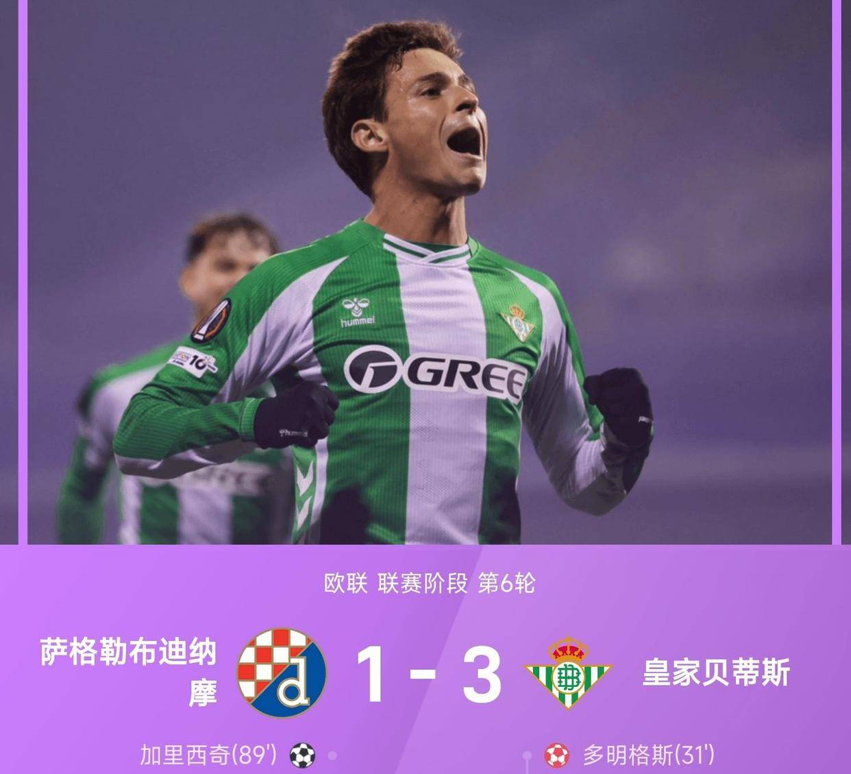 แม้ว่าดินาโม ซาเกร็บจะตีไข่แตกได้ในช่วงท้ายเกม แต่ก็สายเกินไปแล้ว ผลการแข่งขัน 3-1 ทำให้เรอัล เบติสไม่แพ้ใครในยูโรปาลีกเป็นนัดที่หกติดต่อกัน (ชนะสี่ เสมอสอง) สถิติหลังเกมเผยว่าเบติสเก็บได้ 14 คะแนน ขยับขึ้นไปอยู่ในอันดับต้นๆ ของตาราง ตามหลังสามอันดับแรกเพียงหนึ่งคะแนนเท่านั้น