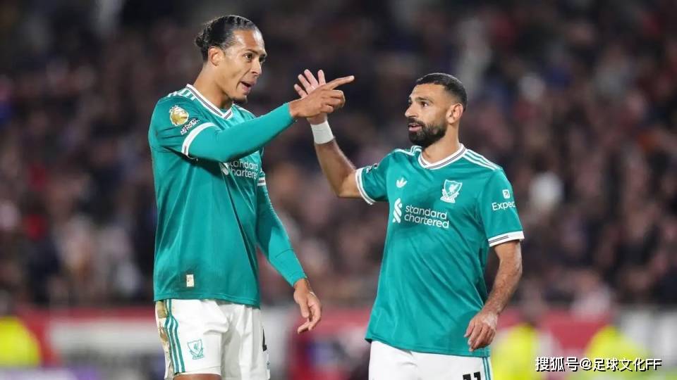 เวอร์จิล ฟาน ไดจ์ค และโมฮาเหม็ด ซาลาห์ สนทนากันระหว่างการแข่งขันพรีเมียร์ลีก