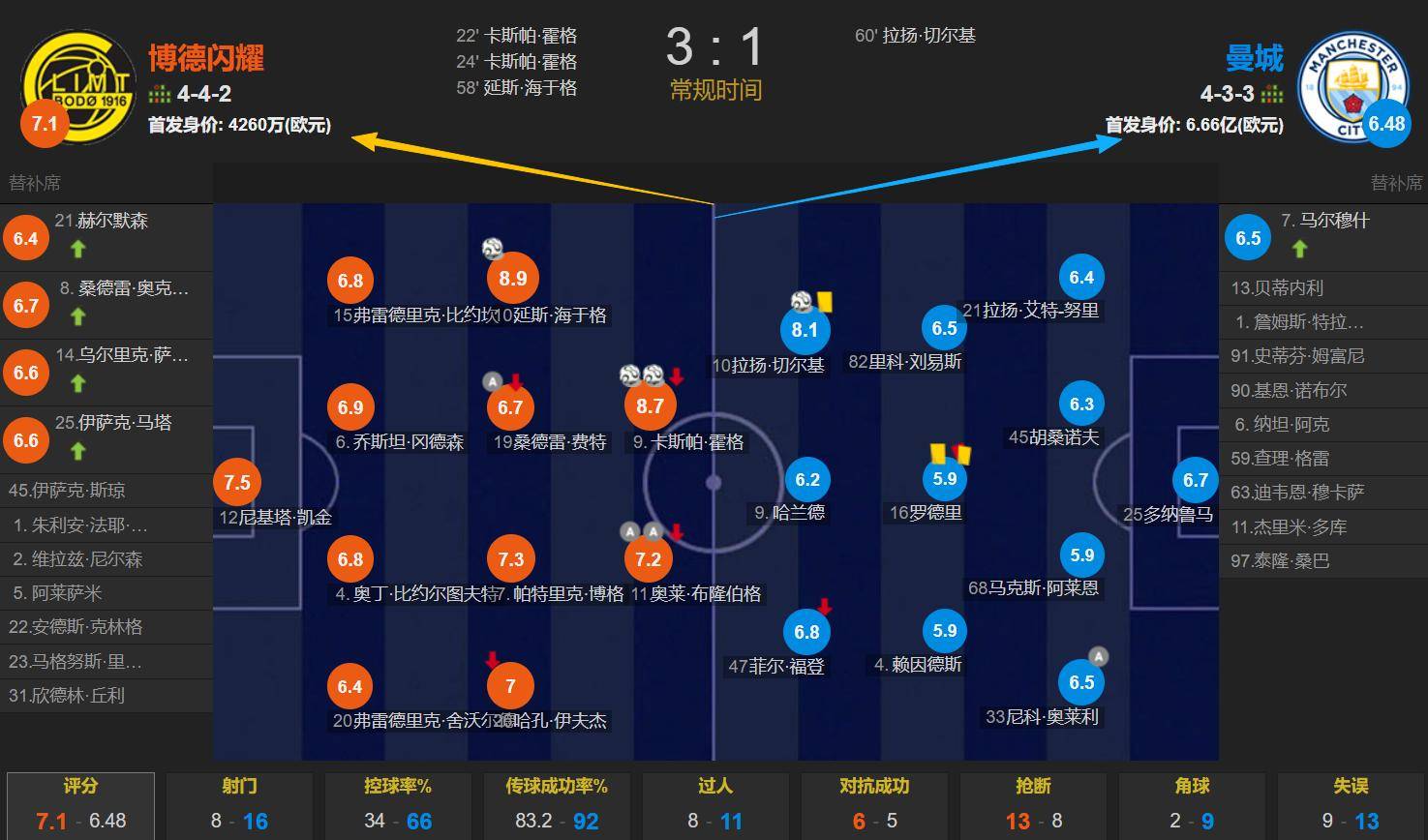การขาดผู้เล่นคนสำคัญเป็นสาเหตุของความพ่ายแพ้ของแมนเชสเตอร์ซิตี้หรือไม่? มูลค่ารวมของผู้เล่นตัวจริงของซิตี้สูงกว่าของโบโด/กลิมท์ถึง 15.6 เท่า กวาร์ดิโอลาทำการเปลี่ยนตัวเพียงครั้งเดียวระหว่างการแข่งขัน โดยเหลือผู้เล่นสำรองที่ไม่ได้ใช้งานอีกห้าคน ผู้เล่นอย่างมาร์มูช, โดกุ และอาเก้ ไม่ได้ลงสนามในเกมนี้มาร์มูชเป็นกำลังสำคัญในบุนเดสลีกา แต่กวาร์ดิโอล่ากลับมองข้ามเขาไปแม้แมนเชสเตอร์ ซิตี้จะลงทุนไปมากก็ตาม อาเก้ถึงกับทำให้แฟนบอลอินเตอร์ มิลานอิจฉาที่อยากได้ตัวเขา แต่กวาร์ดิโอล่ากลับไม่สนใจและไม่ได้ใช้เขาอย่างมีประสิทธิภาพไม่มีผู้จัดการทีมที่เก่งกาจคนใดสามารถพักผ่อนบนความสำเร็จในอดีตได้ การแพ้ให้กับทีมที่ด้อยกว่าอย่างมาก โดยที่ความแข็งแกร่งไม่สมดุลกันอย่างชัดเจน เป็นความรับผิดชอบโดยตรงของผู้จัดการทีม เป๊ป กวาร์ดิโอลา และแมนเชสเตอร์ ซิตี้ ได้ถึงทางตันอย่างสมบูรณ์แล้ว หากไม่มีการเปลี่ยนแปลงผู้จัดการทีม สโมสรจะยังคงต้องทนทุกข์กับการพ่ายแพ้ที่น่าอับอายและการสูญเสียที่ไม่คาดคิด และตัวเป๊ป กวาร์ดิโอลาเองก็จะกลายเป็นภาพสะท้อนของมูรินโญ่ – ที่คอยหาข้อแก้ตัวหลังความพ่ายแพ้อยู่เสมอความพ่ายแพ้ของแมนเชสเตอร์ ซิตี้ ต่อโบโด/กลิมท์ เป็นหายนะที่เกิดจากฝีมือมนุษย์ และกวาร์ดิโอลาไม่สามารถหลีกเลี่ยงความรับผิดชอบได้ การที่เขาปฏิเสธที่จะเปลี่ยนตัวผู้เล่นในช่วงเวลาที่ยากลำบาก การส่งแบ็คซ้ายไปเล่นแบ็คขวา การดื้อดึงส่งฮาแลนด์ลงสนามทั้งที่ฟอร์มตกอย่างต่อเนื่อง การบังคับให้โรดรีกลับมาลงสนามหลังจากบาดเจ็บหนักทั้งที่ยังขาดความเฉียบคม และการส่งไอสซ่า มาเน่ลงตัวจริงทั้งที่เขามักจะสร้างโอกาสให้คู่แข่งอยู่เสมอ ทั้งหมดนี้เป็นความรับผิดชอบของกวาร์ดิโอลาทั้งสิ้น!