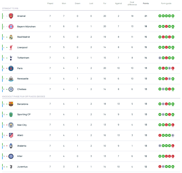 น่าอับอายต่อพรีเมียร์ลีก! หกทีมในศึกยูฟ่า แชมเปียนส์ลีก: ชนะห้าเกม มีเพียงแมนเชสเตอร์ ซิตี้เท่านั้นที่พ่ายแพ้ ทีมที่อยู่นอกแปดอันดับแรก: นิวคาสเซิล, เชลซี, อินเตอร์ มิลาน