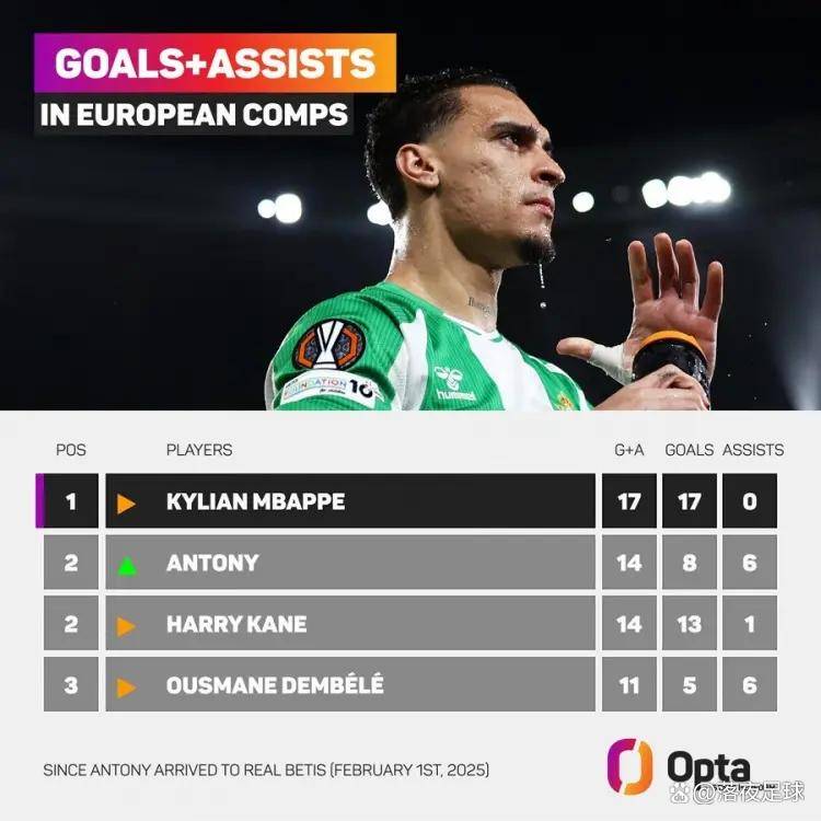 นับตั้งแต่เข้าร่วมทีมเรอัล เบติสเมื่อวันที่ 1 กุมภาพันธ์ 2025 แอนโธนี่มีส่วนร่วมโดยตรงกับ 14 ประตู (8 ประตู, 6 แอสซิสต์) ในการแข่งขันยุโรป ยกเว้นรอบคัดเลือก นี่หมายความว่าอย่างไร? ในภาพรวมของวงการฟุตบอลยุโรปในช่วงเวลาเดียวกัน มีเพียงเอ็มบัปเป้ของเรอัล มาดริดเท่านั้นที่ทำผลงานได้เหนือกว่าเขา (17 ประตู) ขณะที่เขาทำผลงานได้เท่ากับแฮร์รี่ เคน!
