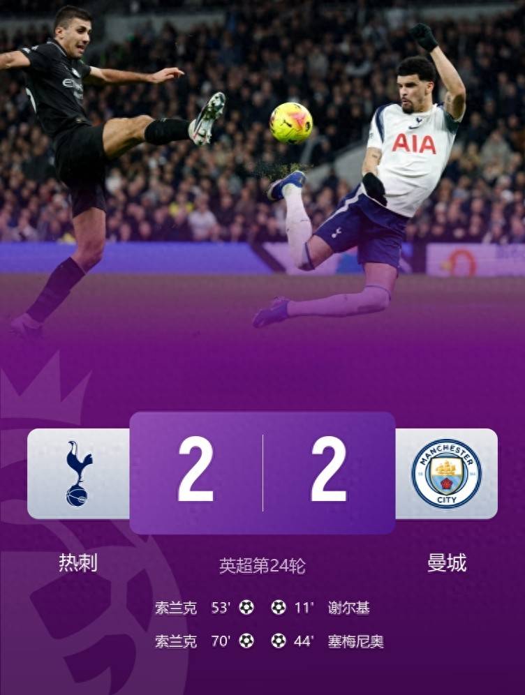 ในรอบนี้ของพรีเมียร์ลีก แมนเชสเตอร์ ซิตี้ ต้องออกไปเยือน ท็อตแน่ม ฮ็อทสเปอร์ ซึ่งในอดีต สเปอร์ส มักเป็นทีมที่สร้างปัญหาให้กับซิตี้อยู่เสมอ แม้ว่าฟอร์มในลีกของท็อตแน่มจะย่ำแย่ในฤดูกาลนี้ แต่พวกเขาก็สามารถคว้าตั๋วเข้ารอบน็อคเอาท์ของยูฟ่า แชมเปี้ยนส์ลีกได้โดยตรง และปัจจุบันก็รั้งอันดับเหนือซิตี้ในตารางคะแนน ทีมของฮันซี่ ฟลิค ยังคงมีศักยภาพที่น่าเกรงขามอยู่ไม่น้อยในการแข่งขันนี้ สองนักเตะใหม่ของซิตี้ในฤดูกาลนี้ ซินเชนโก้และเซเมโญ ทำประตูให้ทีมขึ้นนำ 2-0 ในครึ่งแรก อย่างไรก็ตาม ครึ่งหลังกลับพลิกผันอย่างน่าทึ่ง: กองหน้าชาวอังกฤษของท็อตแน่ม โซลันเก้ ทำประตูที่มีข้อโต้แย้ง ก่อนจะตีเสมอด้วยลูกเตะแมงป่อง ทำให้ซิตี้ต้องกลืนความขมขื่นจากการเสียเปรียบสองประตูในผลเสมอ 2-2การแข่งขันครั้งนี้ได้เผยให้เห็นปัญหาของเป๊ป กวาร์ดิโอลาอีกครั้ง กองกลางของแมนเชสเตอร์ ซิตี้ ไม่เชี่ยวชาญในฟุตบอลครองบอลอีกต่อไป ฟอร์มของโรดรีตกต่ำลงอย่างมากนับตั้งแต่ได้รับบาดเจ็บรุนแรง ทำให้เขากลายเป็นจุดอ่อนที่สุดของทีม ฮาแลนด์กำลังอยู่ในช่วงฟอร์มตกในพรีเมียร์ลีก ไม่สามารถทำผลงานได้ในแต่ละนัด