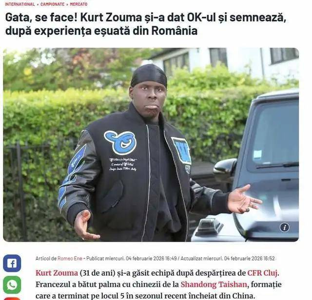 ตามรายงานของสื่อ Shandong Taishan ดูเหมือนจะใกล้ที่จะเซ็นสัญญากับอดีตดาวเตะของ Chelsea อย่าง Kurt Zouma แล้ว ขณะที่แฟนบอลบางคนเชื่อว่า Zouma อยู่ในช่วงปลายอาชีพและปัญหาอาการบาดเจ็บทำให้เขาไม่น่าสนใจสำหรับสโมสรอื่น ความจริงกลับแตกต่างออกไปประการแรก การจากไปของเขาจากสโมสรยักษ์ใหญ่ของโรมาเนียอย่าง CFR 1969 Cluj ไม่ได้เกิดจากปัญหาสุขภาพ แต่เป็นเพราะปัญหาทางการเงินของสโมสรเอง ซึ่งนำไปสู่การไม่จ่ายเงินเดือน Zouma ได้รับค่าจ้างรายสัปดาห์ที่ €50,000 ที่ Cluj ซึ่งเป็นค่าจ้างสูงสุดในลีก โดยได้รับค่าจ้าง €1,269 ต่อนาทีที่เขาลงเล่น ซึ่งเทียบเท่ากับประมาณ ¥10,390 ตัวเลขนี้เพียงอย่างเดียวก็เพียงพอที่จะเป็นหลักฐานที่ชัดเจนถึงคุณภาพและมูลค่าตลาดของเขา