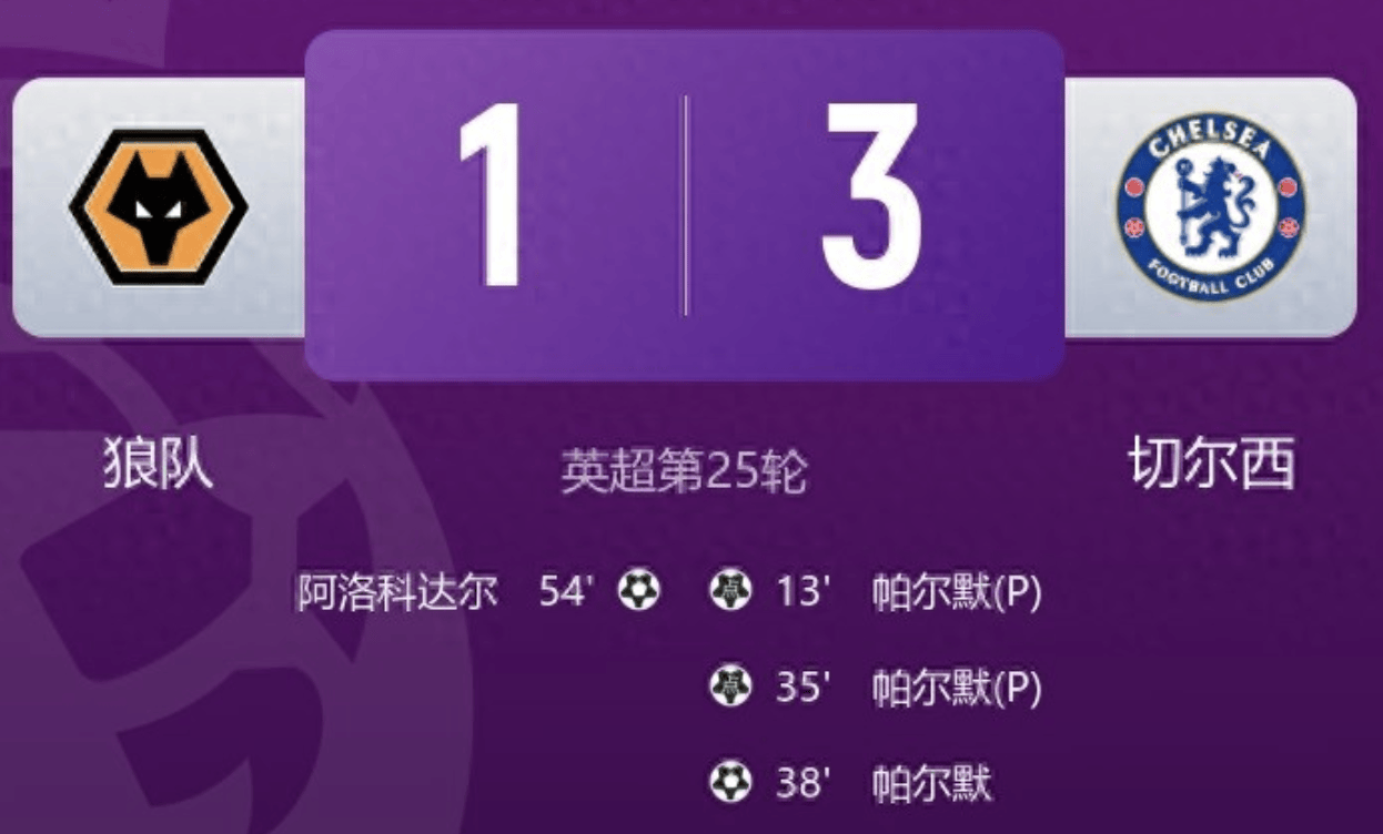 พรีเมียร์ลีก แมตช์เดย์ 25: เชลซี คว้าชัยชนะ 3-1 ในเกมเยือนเหนือ วูล์ฟแฮมป์ตัน วันเดอเรอร์ส ในครึ่งแรก, ฌูเวา เปโดร ทำประตูจากจุดโทษสองครั้ง, ทั้งสองครั้งถูกเปลี่ยนเป็นประตูโดย เมสัน พาลเมอร์ จากนั้น พาลเมอร์ ก็ทำประตูเพิ่มอีกหนึ่งลูกเพื่อทำแฮตทริกก่อนหมดครึ่งแรก อโลโคดาเร ทำประตูตีไข่แตกให้ วูล์ฟส์ ในครึ่งหลังเชลซีขยายสถิติชนะติดต่อกันเป็นสี่นัด สะสม 43 คะแนน ขึ้นมาอยู่อันดับที่ห้าในตารางหลังจากผ่านไป 25 รอบ ในบ่ายวันที่ 7 กุมภาพันธ์ Lao Xu's Private Kitchen ทำนายผลการแข่งขันห้าคู่ถูกต้องทั้งหมด: เชลซีชนะนอกบ้านและชนะขาดลอยเป็นไปตามคาด แมนเชสเตอร์ ยูไนเต็ดชนะในบ้านและชนะขาดลอยก็ถูกต้อง ฮัมบูร์กก็ทายถูก นิเยเมเกนชนะขาดลอยก็แม่นยำ เพียงแต่พลาดเพียงคู่เดียวคือวิลล่าที่ชนะขาดลอยแต่จบที่ 1-1 ซึ่งน่าเสียดายเล็กน้อย ห้าคู่ทาย สี่คู่ถูกต้อง – ผลลัพธ์ที่น่าพอใจ