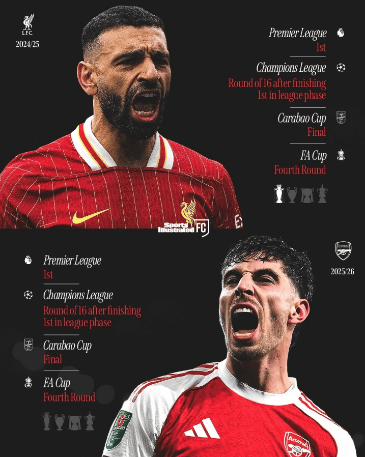 ความคล้ายคลึงนี้อาจไม่ใช่ข่าวดีสำหรับแฟนบอลอาร์เซนอล เนื่องจากทีมลิเวอร์พูลในฤดูกาลที่แล้วสามารถคว้าแชมป์พรีเมียร์ลีกได้เพียงอย่างเดียว