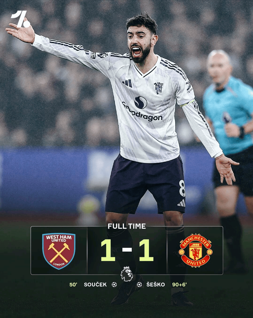 จนกระทั่งช่วงทดเวลาบาดเจ็บที่ตัวสำรอง เชสโก ได้ฉวยโอกาสของเขา ดึงแมนเชสเตอร์ ยูไนเต็ด กลับจากความพ่ายแพ้