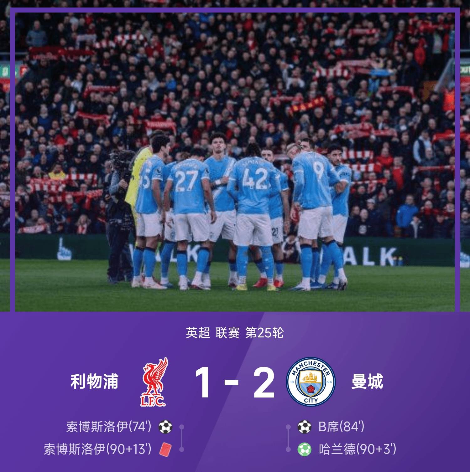 การแข่งขันพรีเมียร์ลีก นัดที่ 25/26: ลิเวอร์พูลเปิดบ้านรับการมาเยือนของแมนเชสเตอร์ ซิตี้ ที่สนามแอนฟิลด์ ตลอดครึ่งแรก แมนเชสเตอร์ ซิตี้ครองเกมได้เหนือกว่า แต่ไม่สามารถเจาะแนวรับของลิเวอร์พูลได้สถานการณ์พลิกผันอย่างน่าทึ่งในครึ่งหลังเมื่อลิเวอร์พูลเปลี่ยนจากเกมรับเป็นเกมรุก โซโบสไลยิงฟรีคิกสุดสวยระดับโลกเปิดสกอร์แรกของเกม แต่ฮาแลนด์จ่ายให้แบร์นาร์โด ซิลวาทำประตูตีเสมอ ก่อนจะยิงจุดโทษปิดท้ายชัยชนะ กลายเป็นประตูแรกของเขาที่แอนฟิลด์ โซโบสไลถูกไล่ออกในช่วงท้ายเกม ขณะที่แมนเชสเตอร์ ซิตี้พลิกกลับมาชนะ 2-1 คว้าชัยชนะสองนัดติดต่อกันในฤดูกาลนี้เหนือลิเวอร์พูล "สิงห์บลูส์" ยังคงไร้พ่ายในสามนัดลีก ขณะที่ "หงส์แดง" ชนะได้เพียงนัดเดียวจากเจ็ดนัดหลังสุดแมนเชสเตอร์ ซิตี้ อยู่ในอันดับสองด้วยคะแนน 50 คะแนน ตามหลังผู้นำอย่าง อาร์เซนอล อยู่ 6 คะแนน ลิเวอร์พูล อยู่ในอันดับที่หกด้วยคะแนน 39 คะแนน ตามหลังสี่อันดับแรกอยู่ 5 คะแนน