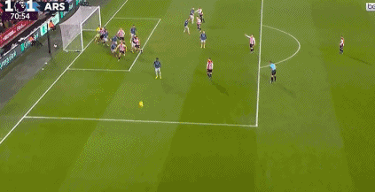 ในนาทีที่ 61 อาร์เซนอลเริ่มเกมรุกจากการทุ่มบอล เคโยเดเคลียร์บอลแต่ถูกสกัดไว้ได้ อินคาจึงพาบอลขึ้นทางฝั่งซ้ายและเปิดบอลต่ำเข้ากลาง มัดูเอเก้กระโดดโหม่งบอลข้ามศีรษะเคลเลเฮอร์เข้าไปอย่างสวยงาม อาร์เซนอลขึ้นนำ 1-0!