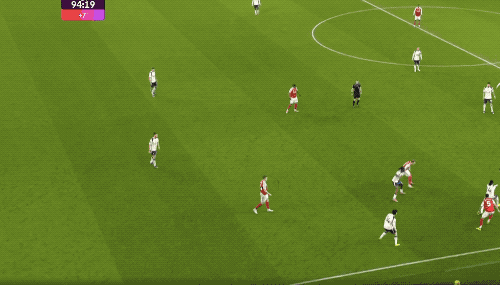 ในช่วงทดเวลาบาดเจ็บ มาร์ติน โอเดการ์ด ตัวสำรองจ่ายบอลให้ ยอร์เกน ยอร์เกนเซ่น ทำประตูที่สองของเขาในเกมนี้
