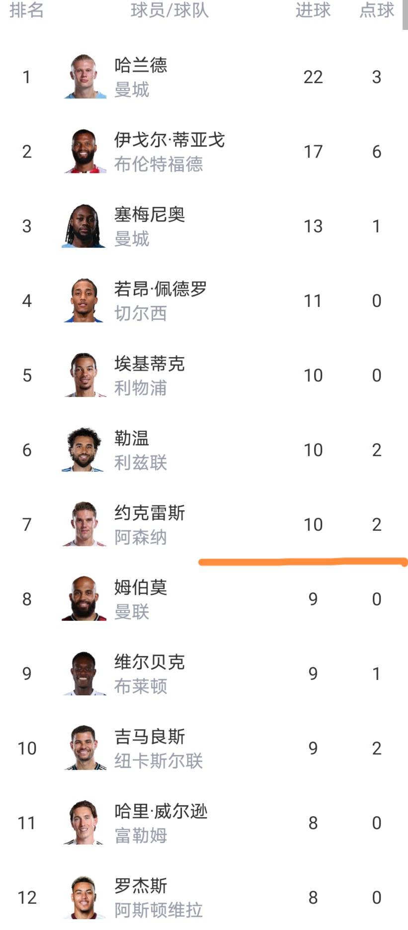 ผู้เล่นเจ็ดคนทำประตูได้สองหลักในตารางคะแนนแล้ว