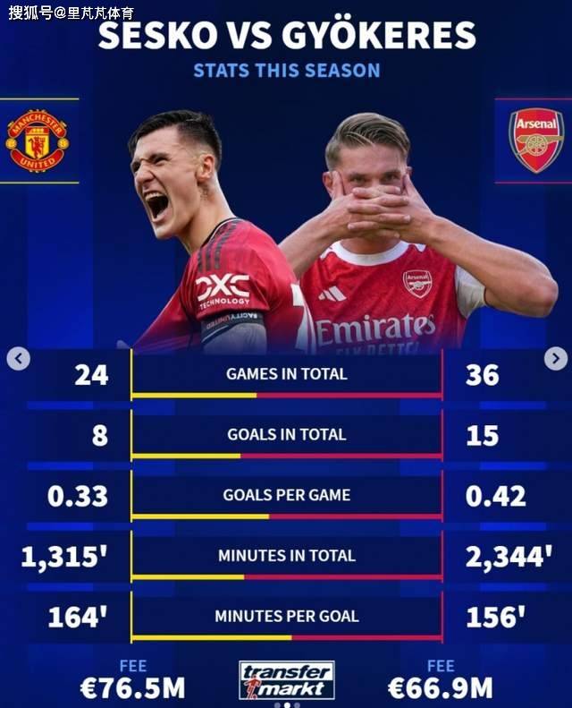 Transfermarkt ได้เปรียบเทียบผลงานทางสถิติของกองหน้าตัวใหม่ของแมนเชสเตอร์ ยูไนเต็ด และอาร์เซนอลในฤดูกาลนี้ โดยเชสโกของแมนเชสเตอร์ ยูไนเต็ด (ค่าตัว 76.5 ล้านยูโร) ลงเล่นไปแล้ว 24 นัด ยิงได้ 8 ประตู เฉลี่ย 0.33 ประตูต่อเกม จากเวลาลงสนาม 1,315 นาที เขาทำประตูได้ 1 ประตูทุกๆ 164 นาทียูริ ยูริเยวิชของอาร์เซนอล (ค่าตัว 66.9 ล้านยูโร) ลงเล่น 36 นัด ยิงได้ 15 ประตู เฉลี่ย 0.42 ประตูต่อเกม ในเวลา 2,344 นาทีที่ลงสนาม เขาทำประตูได้ทุก 156 นาที ข้อมูลระบุว่ายูริเยวิชมีความได้เปรียบเล็กน้อยทั้งในด้านประสิทธิภาพการทำประตูและเวลาเล่น