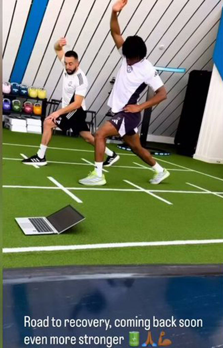 ภาพล่าสุดที่เผยแพร่โดย Dugu แสดงให้เห็นว่าเขากำลังฝึกความแข็งแรงในยิมร่วมกับทีมโค้ชของแมนเชสเตอร์ยูไนเต็ด เพื่อรักษาการทำงานปกติของทุกส่วนของร่างกาย เอ็นร้อยหวายของเขายังคงไม่สามารถทนต่อกิจกรรมที่ต้องออกแรงมาก เช่น การวิ่งเร็ว การเปลี่ยนทิศทางอย่างกะทันหัน และความท้าทายทางกายภาพ - การเคลื่อนไหวที่หลีกเลี่ยงไม่ได้ในการแข่งขันฟุตบอล