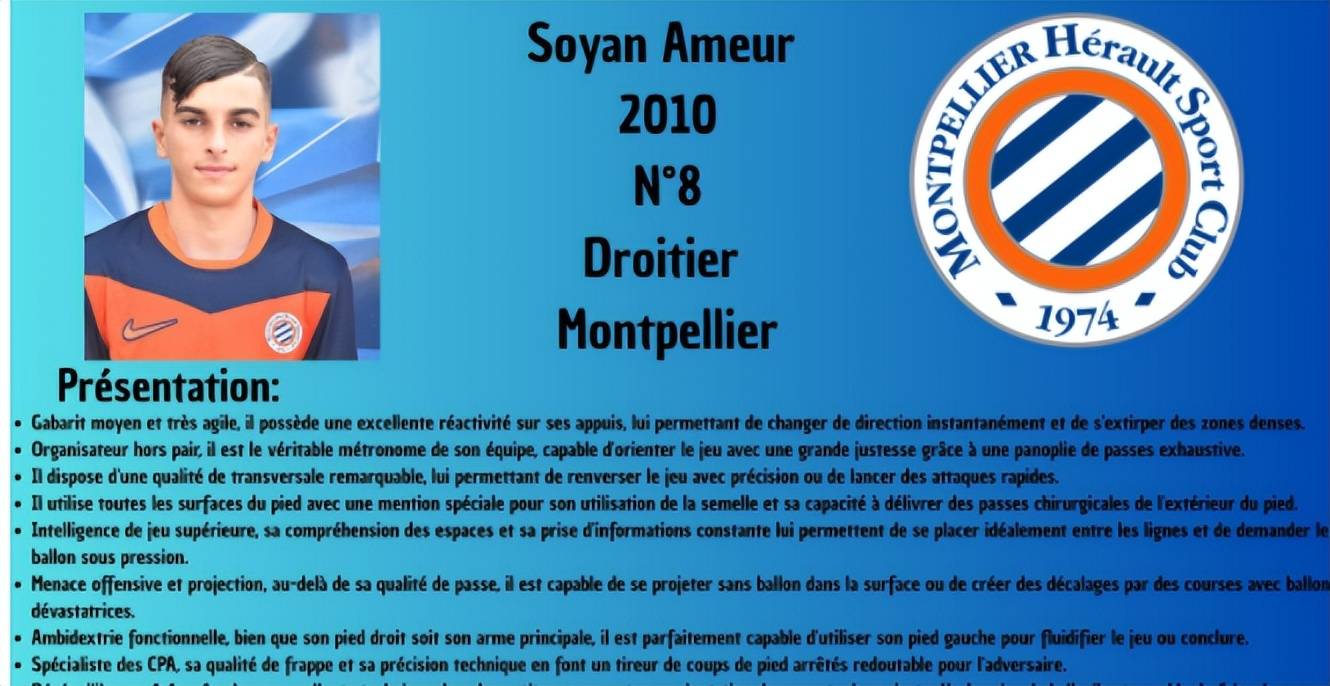 นักเตะฟุตบอลพรสวรรค์ของฝรั่งเศสผุดขึ้นราวกับเห็ดหลังฝนตก ปรากฏตัวออกมาอย่างต่อเนื่องไม่สิ้นสุด เมื่อไม่นานมานี้ มงต์เปลลิเย่ร์ เอชเอสซี ในลีกเดอซ์ ได้ผลิตกองกลางดาวรุ่งพรสวรรค์สูงอีกคนหนึ่งขึ้นมา เขาคือ โซยาน อามัวร์ ดาวรุ่งวัย 15 ปีที่กำลังมาแรง