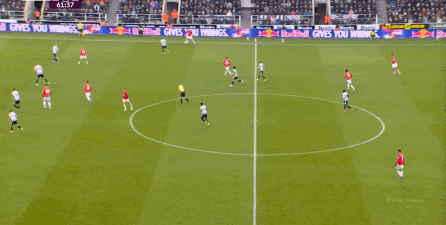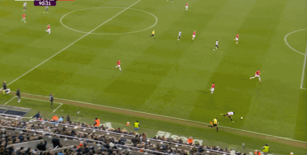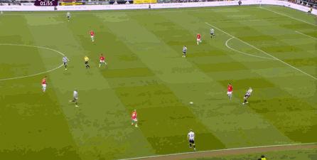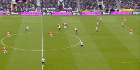 ข้อดีของจำนวนคนในสองเกมติดต่อกันนั้นเดิมเอื้อต่อผลงานของแมนเชสเตอร์ยูไนเต็ด Cunia เล่นได้เปรียบอย่างชัดเจนกับ Trippier อีกครั้ง แต่ถูก Newcastle บล็อก: