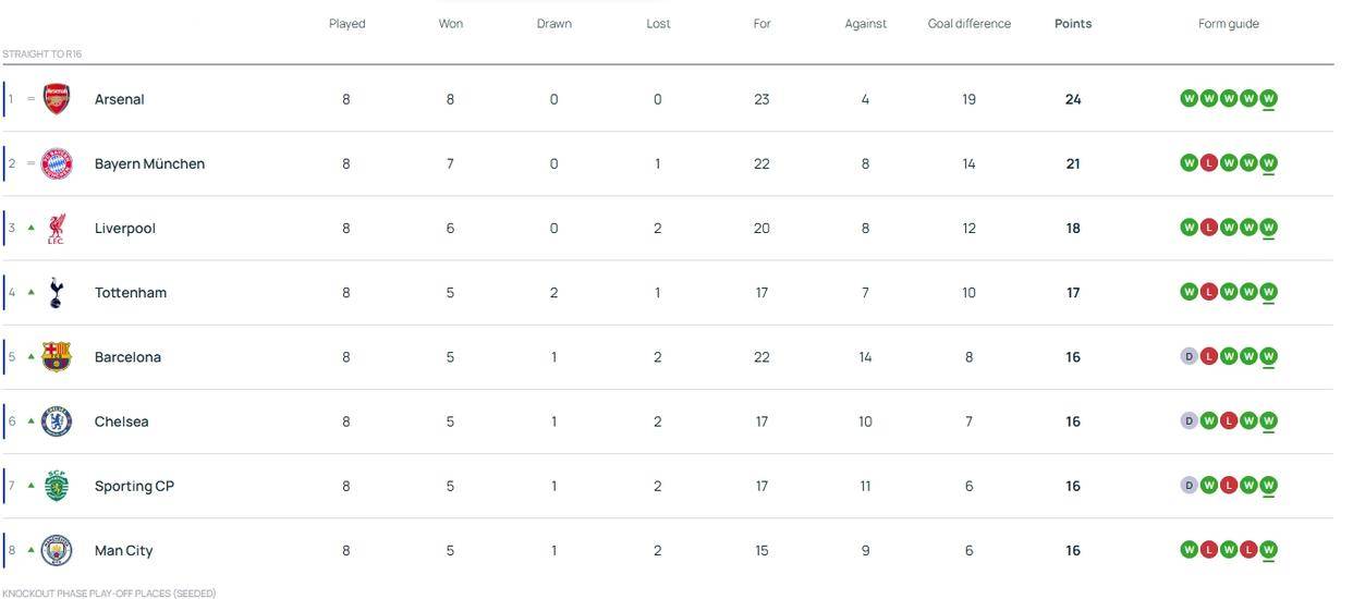 มาเน้นท้ายรอบแบ่งกลุ่มกันเถอะ ในการปรับโครงสร้างยูฟ่าแชมเปี้ยนส์ลีก 6 อันดับแรกของพรีเมียร์ลีก อาร์เซนอล ลิเวอร์พูล เชลซี นิวคาสเซิล และท็อตแนม ฮ็อตสเปอร์ ได้ร่วมมือกันบุก 16 อันดับแรก แสดงให้เห็นถึงความแข็งแกร่งโดยรวมของพรีเมียร์ลีก ตัดสินจากผลการจับสลาก แมนเชสเตอร์ ซิตี้ ลิเวอร์พูล และเชลซี โชคไม่ดีที่ได้กระจุกตัวในครึ่งแรก ขณะที่ นิวคาสเซิ่ล, อาร์เซนอล และ ท็อตแน่ม อยู่ในครึ่งล่าง ซึ่งเพิ่มความเป็นไปได้ที่ทีมพรีเมียร์ลีกจะเจอกันล่วงหน้าอย่างไม่ต้องสงสัย แต่ก็ยังมีความหวัง ทีมพรีเมียร์ลีกที่จะเข้าร่วมรอบชิงชนะเลิศอย่างไม่ต้องสงสัย