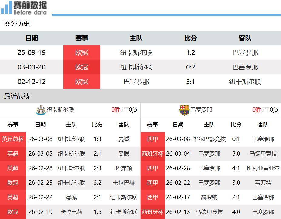 ก่อนสถานการณ์ของทั้งสองทีม! นิวคาสเซิ่ลอยู่ในอันดับที่ 12 ในแชมเปี้ยนส์ลีกและรอบเพลย์ออฟภายใต้ Underdog Karabach เข้าสู่รอบน็อคเอาท์ได้อย่างง่ายดายบาร์เซโลนาอยู่ในอันดับที่ห้าในแชมเปี้ยนส์ลีกด้วยรอบน็อคเอาท์ที่ห้า นิวคาสเซิ่ลอยู่ในอันดับที่ 12 ในพรีเมียร์ลีกด้วยมูลค่ารวม 710 ล้านยูโรบาร์เซโลนาเป็นผู้นำของลาลีกาและมูลค่ารวมของทีมคือ 11 100 ล้านยูโร ในเกมล่าสุด นิวคาสเซิ่ล เอฟเอ คัพ แพ้ แมนฯ ซิตี้ 1-3 ในบ้าน และ บาร์เซโลน่า เอาชนะ บิลเบา 1-0 ไปเพื่อคว้าแชมป์ ลาลีกา ที่แข็งแกร่ง