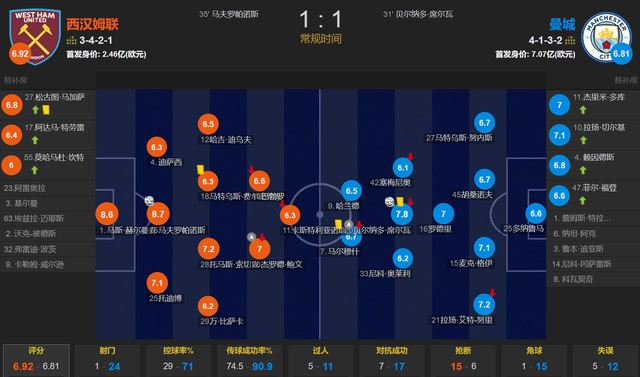 อัตราการครองบอลของเวสต์แฮม ยูไนเต็ด เพียง 29% และมีทั้งหมด 1 นัด โดยยิงเข้ากรอบ 1 นัด ยิงเข้าที่ แมนฯ ซิตี้ 24 ฟุต โดยยิงเข้าเป้า 6 นัด ในเกมที่เขาไม่สามารถชนะได้ กวาร์ดิโอล่าต้องรับผิดชอบ และฮาร์แลนด์เป็นศูนย์กลางที่ไม่มีแบ็คและเฮดเดอร์ และเขาไม่สามารถเป็นพันธมิตรกับใครได้ เกมนี้เป็น Semenio และเกมนี้เป็น Marmush บางทีรูปแบบ Wufeng อาจเหมาะกับแมนเชสเตอร์ซิตี้มากกว่า อย่างน้อยก็สามารถวิ่งได้มากขึ้นและสลับไปมา หาก Guardiola ใช้ Harland Hard ตอบโต้อย่างเฉียบขาด Demon จะไม่เข้ากันกับการควบคุมการส่งและกลยุทธ์ที่เข้มข้น