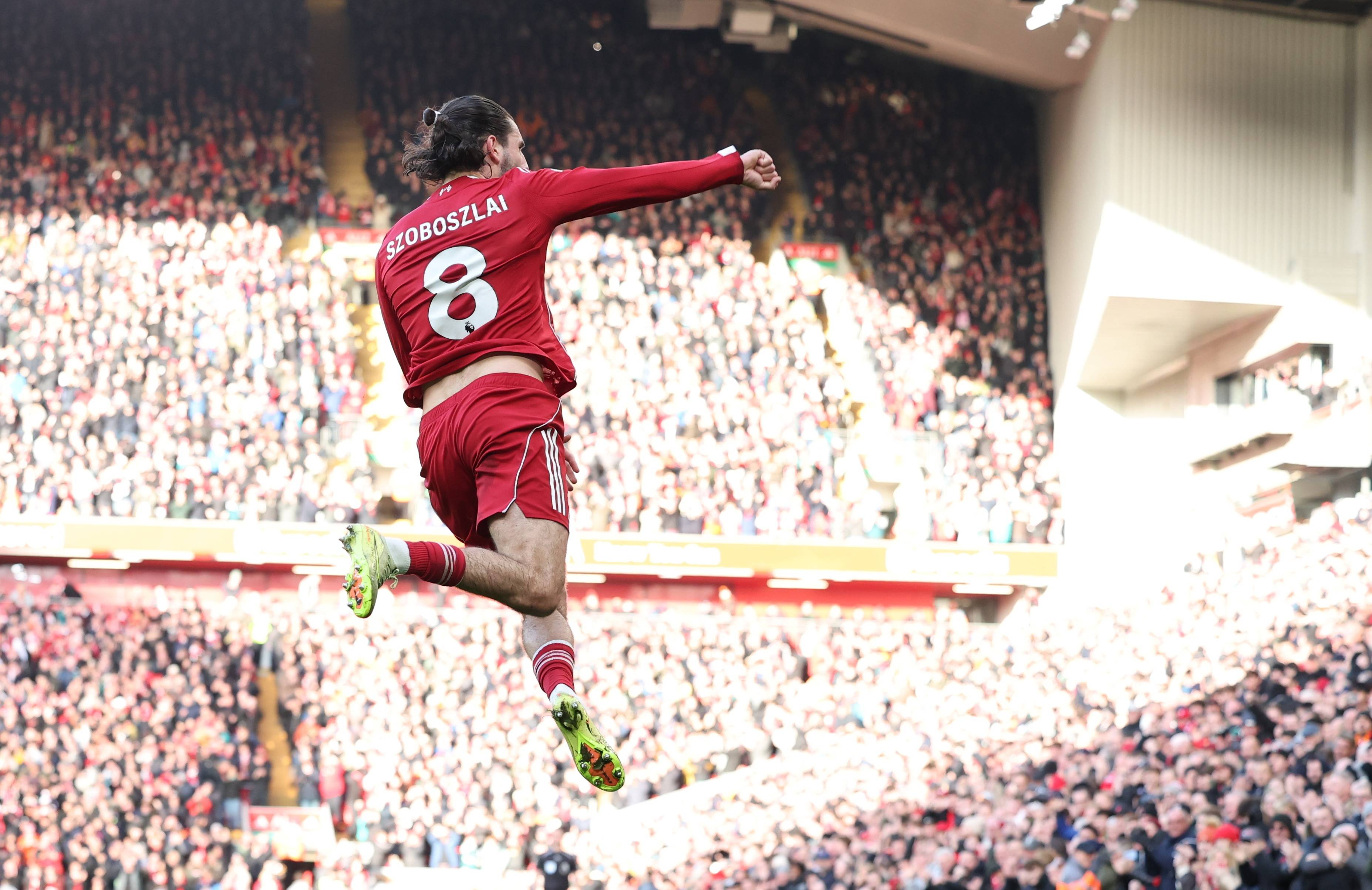 ผู้เล่นลิเวอร์พูล Sobosloy เมื่อวันที่ 15 มีนาคม (ขวา) ฉลองประตู สำนักข่าวซินหัว/OU XIN