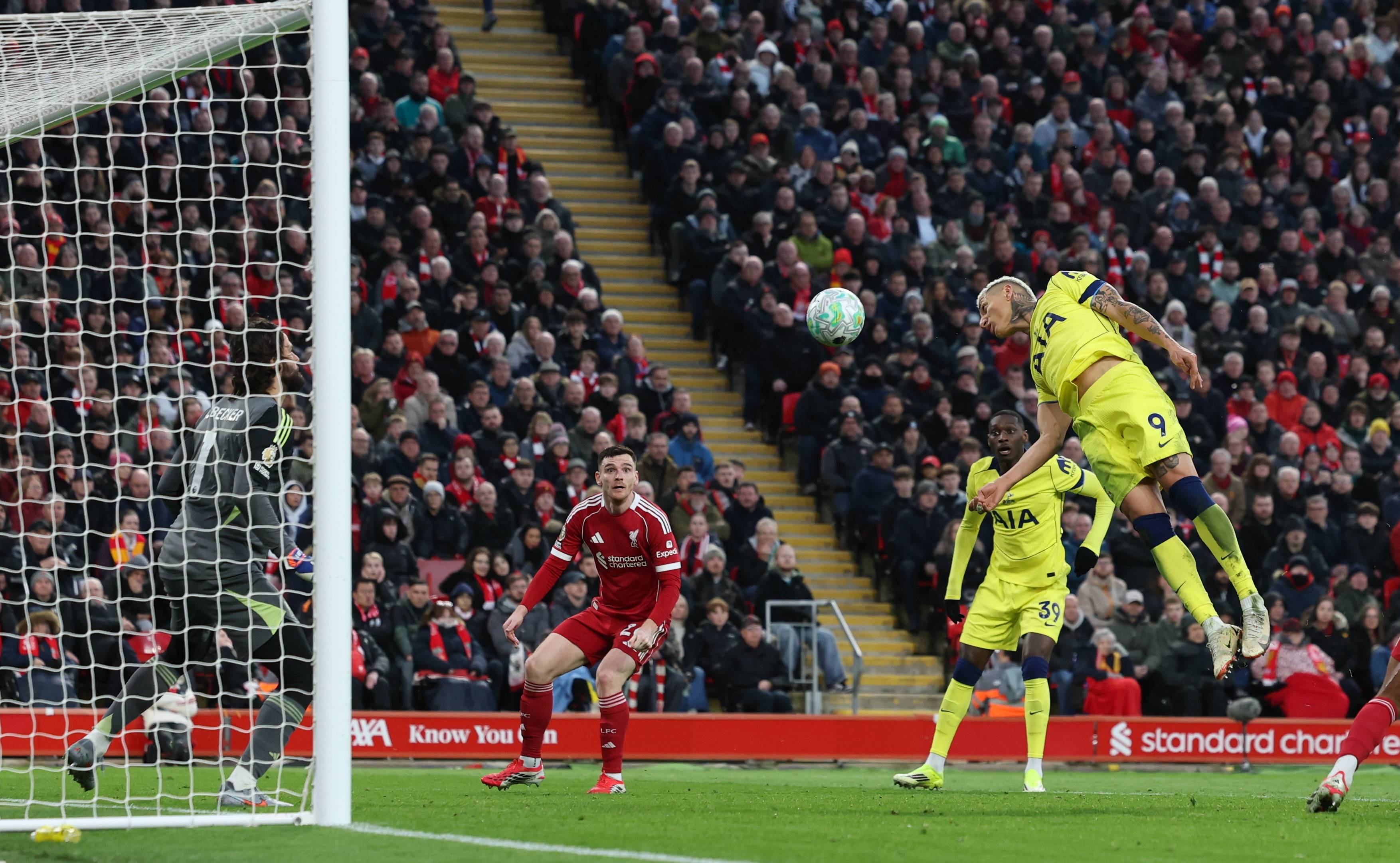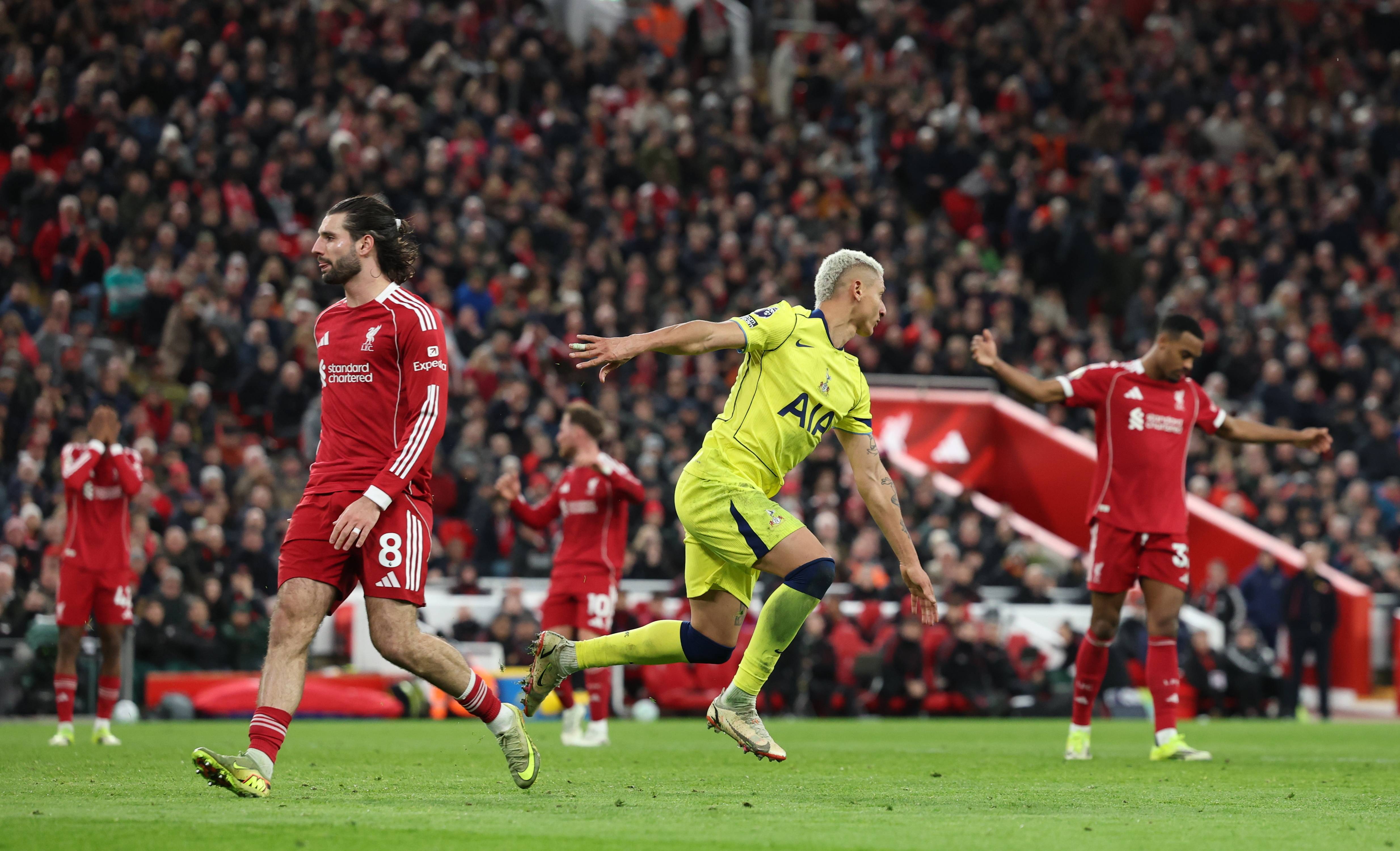 ท็อตแนม ฮ็อตสเปอร์ 1-1 ที่ลิเวอร์พูลในรอบที่ 30 ของฟุตบอลอังกฤษซูเปอร์ลีกในฤดูกาล 2025-2026 ที่ลิเวอร์พูล ประเทศอังกฤษ เมื่อวันที่ 15 มีนาคม