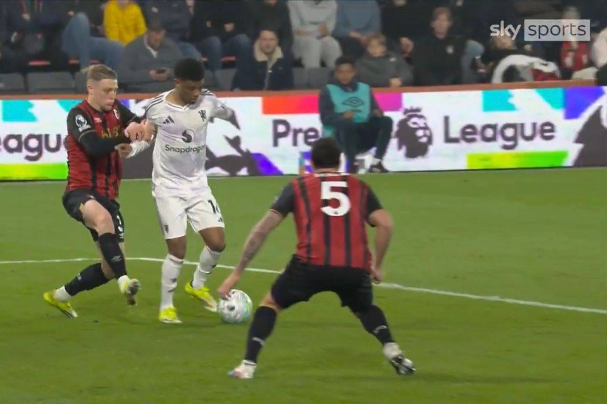ในเวลานั้น 1-0 นำ แมนเชสเตอร์ ยูไนเต็ด เข้าสู่เขตโทษบอร์นมัธ และ บรูโน่ เฟอร์นันเดส ผ่านบอลยอดเยี่ยมให้ อมาด ดิอัลโล ที่ฉวยโอกาสจากสถานการณ์และนำมันเข้าสู่กรอบเขตโทษ และตกลงสู่พื้นภายใต้เอเดรียน ทรูวร์ ผู้ตัดสิน Stuart Atville ไม่ได้ทำฟาวล์ และ Bournemouth ได้บอลและยิงประตู