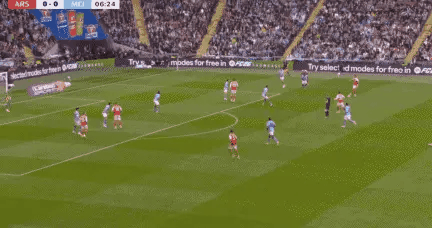 ในครึ่งแรกเกมในนาทีที่ 7 ฮาเวอร์ตซ์และซาก้ายังคงยิงต่อในเขตโทษ แทรฟฟอร์ด เซฟต่อเนื่องและพยายามป้องกันประตูโดยไม่แพ้ ในนาทีที่ 27 การจ่ายบอลยาวของกาเบรียลถูกตัดขาด และจากนั้นแมนเชสเตอร์ ซิตี้ โต้กลับ และการยิงของไซเมนในเขตโทษก็ถูกบล็อกโดยกาเบรียล ในนาทีที่ 33 กาเบรียลเป็นหัวหน้าเรือข้ามฟาก และเจ้ ไรซ์ ฉวยโอกาสจากสถานการณ์เพื่อบุกเข้าไปในเขตโทษ เอกทำประตูป้องกันที่สำคัญและเคลียร์บอล ในครึ่งหลัง ทั้งสองทีมเสมอกัน 0:0