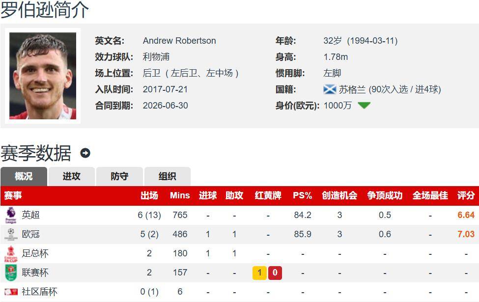 โรเบิร์ตสันอายุ 32 ปี สูง 1.78 เมตร มีผู้เล่นเท้าซ้าย ส่วนใหญ่เป็นตำแหน่งแบ็คซ้าย และยังสามารถเล่นกองกลางซ้ายหรือกัปตันสกอตแลนด์ได้อีกด้วย สัญญากับลิเวอร์พูลจะอยู่ที่ประมาณ 10 ล้านยูโรในปลายเดือนมิถุนายนปีนี้ โรเบิร์ตสันกลายเป็นตัวสำรองในลิเวอร์พูลในฤดูกาลนี้ด้วย 31 นัดในการแข่งขันต่าง ๆ รวม 15 เริ่มยิง 2 ประตูและ 2 แอสซิสต์ ซึ่งพรีเมียร์ลีกเพิ่งออกสตาร์ทได้เพียง 6 ครั้ง
