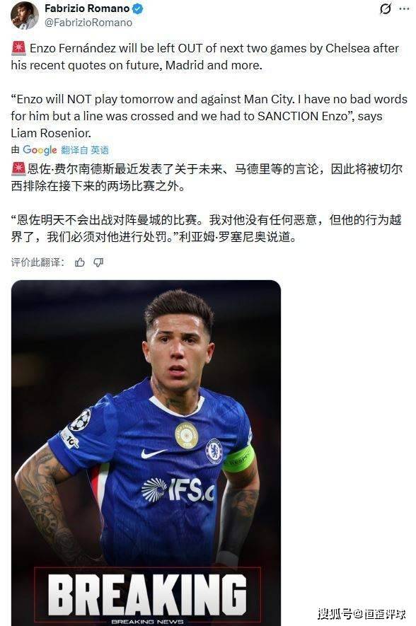ข่าววันที่ 14 เมษายน ตามรายงานของสื่ออังกฤษ กานาโช สตาร์ชาวอาร์เจนตินามีโอกาสสูงที่จะตกเป็นเป้าหมายของการลงโทษในทีมเชลซีเนื่องจากการดำเนินการที่ไม่เหมาะสมของโซเชียลมีเดีย อัจฉริยะวัย 21 ปีกำลังผลักดันอาชีพของเขาให้ก้าวไปสู่ขุมนรกทีละขั้น