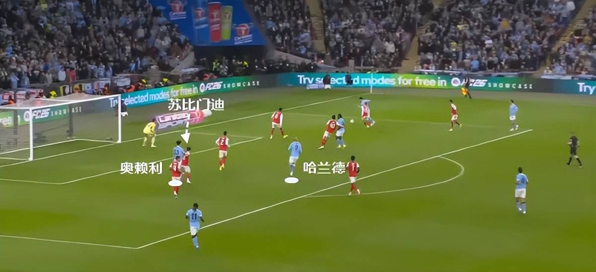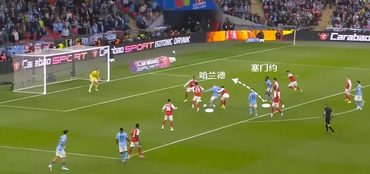 การป้องกันทางอากาศของอาร์เซนอลยังคงมีปัญหาบางอย่าง ด้วยความสามารถในการทำประตูของฮาร์แลนด์ แมนเชสเตอร์ ซิตี้ ใช้เขาเพื่อดึงดูดแนวรับของอาร์เซนอล และปล่อยให้เพื่อนร่วมทีมของเขาเข้าสู่เขตโทษเพื่อเอาชนะสองแต้ม ซึ่งกลายเป็นการเคลื่อนไหวของนักฆ่า