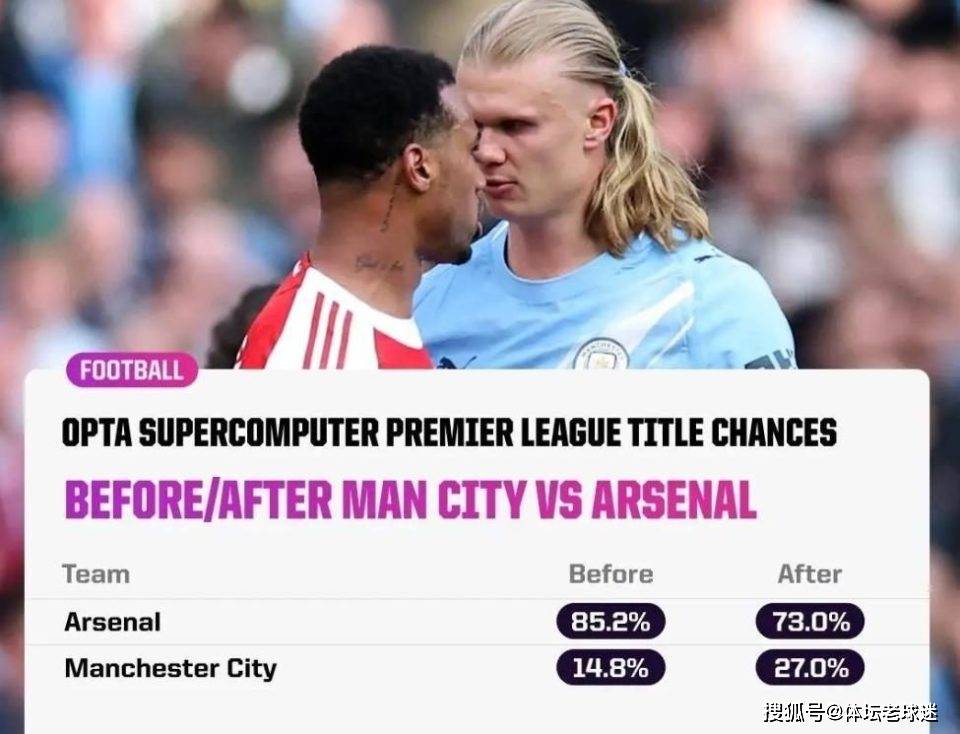 แม้ว่าปัจจุบัน อาร์เซน่อล จะเป็นผู้นำด้วย 70 แต้ม และแมนเชสเตอร์ ซิตี้ ก็อยู่หลัง 67 แต้ม ตัดสินจากความน่าจะเป็นที่จะคว้าแชมป์ อาร์เซนอล ยังคงนำ 27% ของแมนเชสเตอร์ ซิตี้ ไป 73% แต่ทุกคนรู้ว่าทหารของกองบลูมูนเพียงต้องเป็นตัวของตัวเองเพื่อให้แน่ใจว่าอีก 6 รอบที่เหลือจะรักษาชัยชนะได้อย่างเต็มที่ ความได้เปรียบชั้นนำของมือปืนและความน่าจะเป็นที่จะคว้าแชมป์ได้ทั้งหมดเป็นเพียงเรื่องตลก