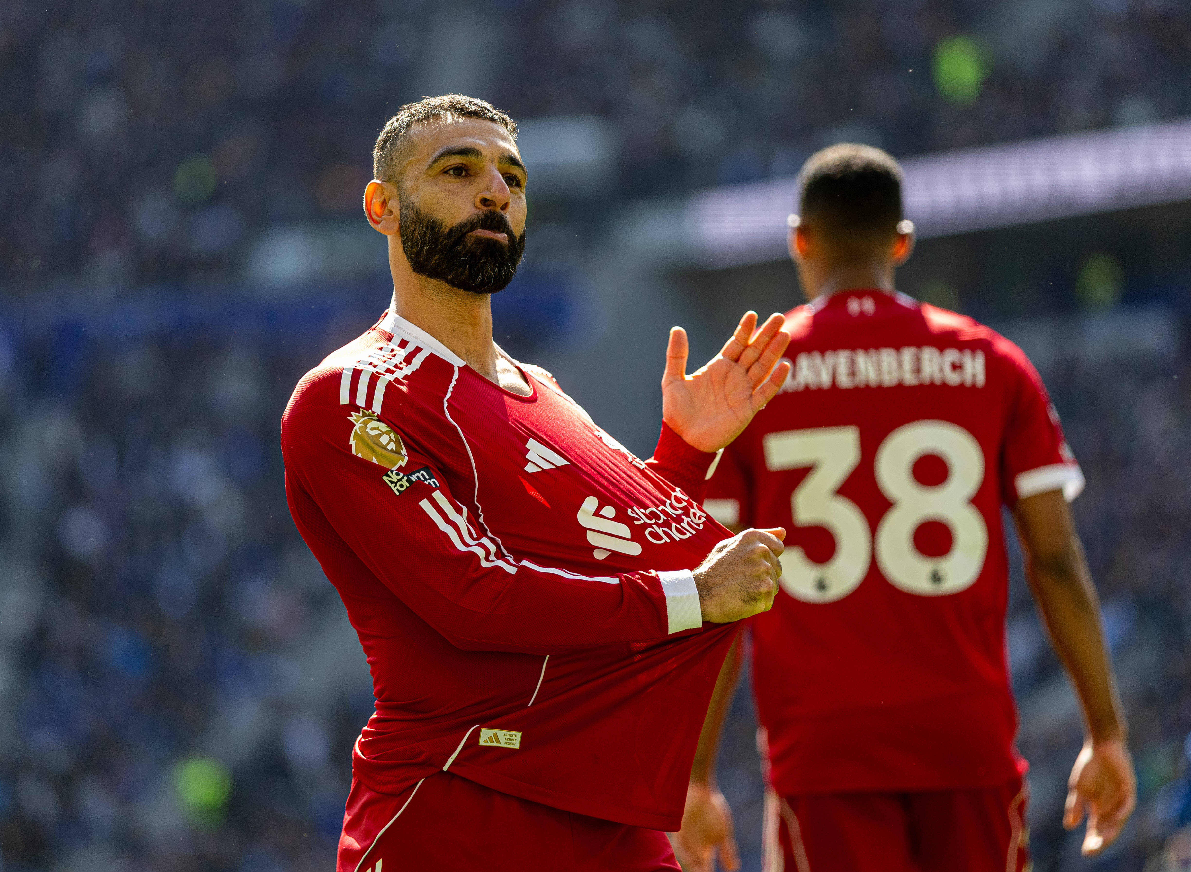 ซาลาห์ นักเตะลิเวอร์พูล ในวันที่ 19 เมษายน (ซ้าย) ฉลองประตูในเกม สำนักข่าวซินหัว