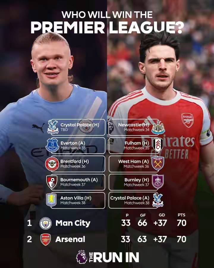 ในรอบที่ 34 ของพรีเมียร์ลีก แมนเชสเตอร์ ซิตี้ เอาชนะ เบิร์นลีย์ 1-0 และทั้งสองแต้มและผลต่างประตูเสมอกับอาร์เซนอล แมนเชสเตอร์ ซิตี้ แซงหน้าอาร์เซนอล คว้าอันดับ 1 ในพรีเมียร์ลีก ที่ แมนฯ ซิตี้ คว้าแชมป์พรีเมียร์ลีกไปแล้ว