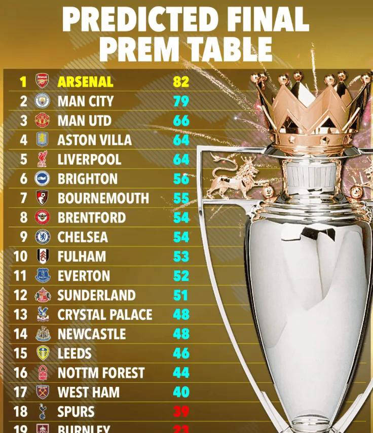 ตัดสินจากข้อมูลที่จำลองโดยซูเปอร์คอมพิวเตอร์ ไม่น่าจะเป็นไปได้ที่ทั้งสองทีมจะรักษาชัยชนะได้อย่างสมบูรณ์ การคาดการณ์แสดงให้เห็นว่าอาร์เซนอลจะชนะ 3 ครั้งและแพ้ 1 ครั้งใน 4 เกมถัดไปและคะแนนสุดท้ายคือ 82 คะแนนในขณะที่แมนเชสเตอร์ซิตี้อาจแพ้ 2 คะแนนและคะแนนจะคงที่ที่ประมาณ 79 คะแนน ซึ่งหมายความว่าแมนเชสเตอร์ ซิตี้ ที่นำโดยกวาร์ดิโอล่า จะประสบความสูญเสียครั้งใหญ่อย่างน้อยหนึ่งครั้งในช่วงวิกฤตของการโจมตี แม้ว่าทั้งสองทีมสามารถทำคะแนนได้ถึง 85 คะแนน แต่แบบจำลองทางคณิตศาสตร์ก็มีแนวโน้มที่จะมีความสามารถในการจัดอันดับของอาร์เซนอลได้จนกว่าจะสิ้นสุดฤดูกาล