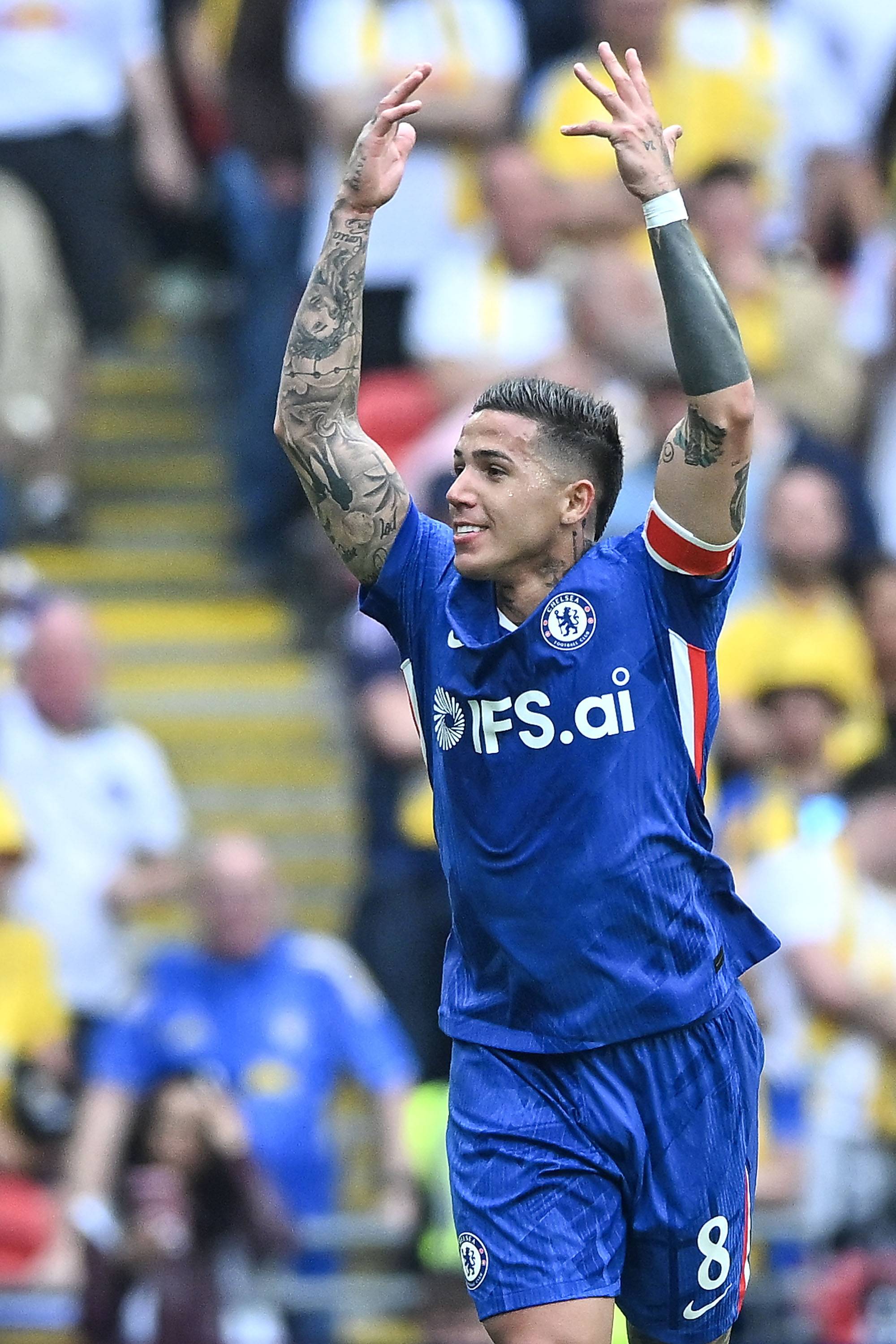 เมื่อวันที่ 26 เมษายน เฟร์นานเดซ นักเตะเชลซี ได้ฉลองประตูชัย สำนักข่าวซินหัว/OU XIN