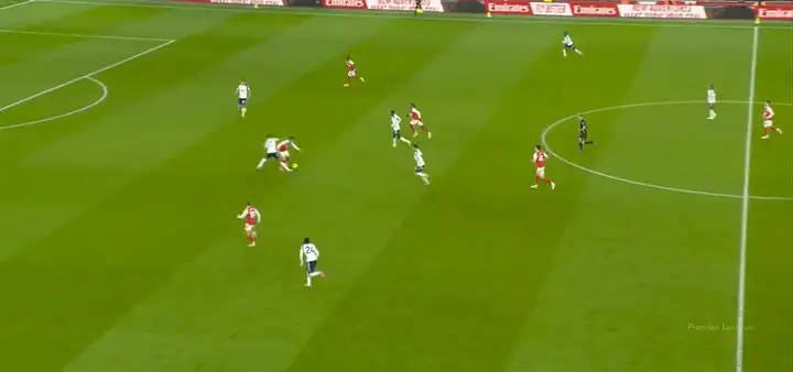 เผชิญหน้ากับแนวรับของท็อตแนมที่ผู้เล่นยืนแน่นกันเป็นกลุ่ม เขาเลือกที่จะส่งบอลโด่งข้ามหัว ด้วยการไม่หวั่นไหวต่อเสียงเชียร์จากแฟนบอล เขาจับจังหวะได้อย่างสมบูรณ์แบบ ส่งบอลลอยขึ้นฟ้า ก่อนจะข้ามศีรษะกองหลังไปอย่างสวยงาม เพื่อนร่วมทีมของเขาวิ่งมาถึงในจังหวะที่เหมาะสมพอดี และยิงวอลเลย์เข้าประตูไป