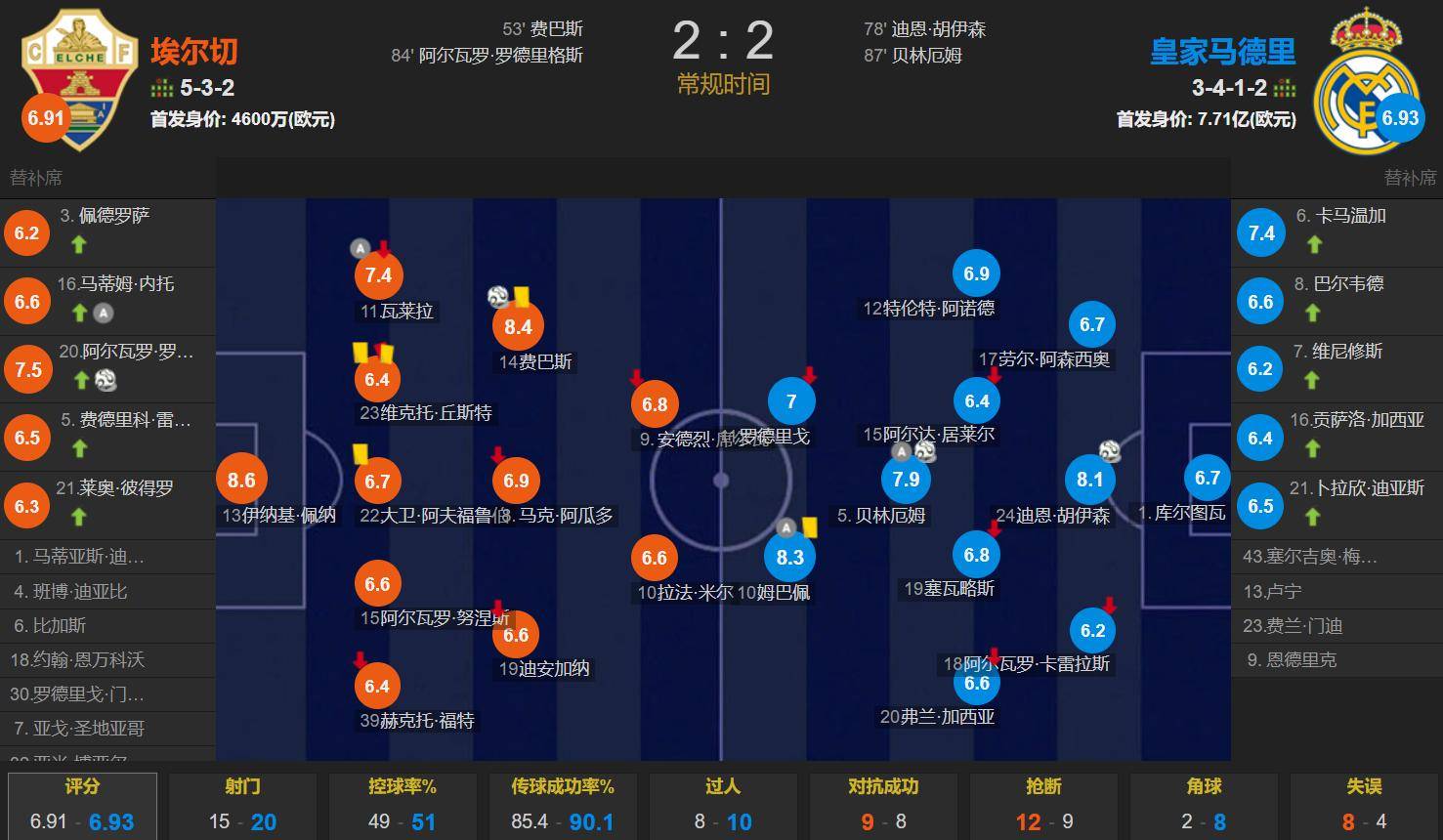 ในการแข่งขันนี้ เรอัล มาดริด ตกเป็นฝ่ายตามหลังถึงสองครั้งแต่สามารถตีเสมอได้ทั้งสองครั้ง ท้ายที่สุดพวกเขาก็ได้ประตูตีเสมอในช่วงท้ายเกมอย่างดราม่าจากประตูที่มีข้อถกเถียงอย่างมาก ก่อนการแข่งขันนี้ ฟลอเรนติโน เปเรซ ประธานสโมสรเรอัล มาดริด ได้ออกมาแสดงความกังวลเกี่ยวกับการปฏิบัติของกรรมการที่มีต่อบาร์เซโลนา การแข่งขันลาลีกานี้ได้แสดงให้เห็นอีกครั้งถึง 'การตัดสินแบบราชวงศ์' ของลาลีกา ที่มีมาตรฐานสองชั้นอย่างชัดเจน โดยเรอัล มาดริดเป็นฝ่ายได้รับประโยชน์อย่างเห็นได้ชัดเรอัล มาดริด ได้ประโยชน์จากการพุ่งล้มซ้ำแล้วซ้ำเล่าเพื่อขัดขวางการโจมตีของเอลเช่ โดยเฉพาะอย่างยิ่งในประตูตีเสมอช่วงท้ายเกม ซึ่งอาจเรียกได้ว่าเป็นการปะทะกับผู้รักษาประตูอย่างชัดเจน แต่ทั้งผู้ตัดสินและวีเออาร์กลับเพิกเฉยและเมินเฉย ดูเหมือนว่าภารกิจของเจ้าหน้าที่คือการทำทุกวิถีทางเพื่อให้แน่ใจว่าเรอัล มาดริดจะได้หนึ่งแต้มความสามารถของเรอัล มาดริดในการเก็บแต้มหนึ่งจากเอลเช่ในรอบลาลีกานี้เป็นผลมาจากผู้ตัดสินลาลีกาที่ 'ราชัน' อย่างแท้จริง