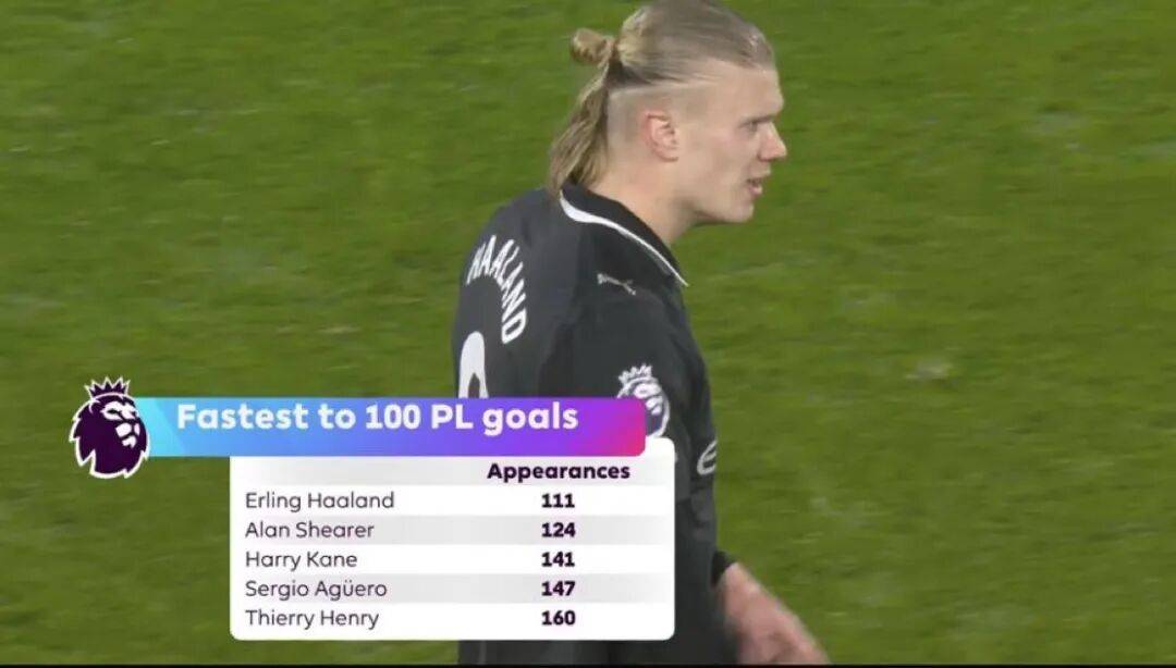 หลังจากต้องเผชิญกับการไร้ประตูติดต่อกันถึงสามนัด ฮาลันด์ก็สามารถทำลายสถิติการทำ 100 ประตูเร็วที่สุดในพรีเมียร์ลีกได้สำเร็จ สนามคราเวน ค็อตเทจของฟูแล่มได้เป็นสักขีพยานในตำนานบทหนึ่งของประวัติศาสตร์พรีเมียร์ลีกในวัยเพียง 25 ปี ฮาแลนด์ทำประตูครบ 100 ประตูในพรีเมียร์ลีกจากการลงเล่นเพียง 111 นัด ทำลายสถิติเดิมของอลัน เชียเรอร์ที่ทำได้ 124 นัด เขาเป็นผู้นำเหนือผู้เล่นระดับตำนานอย่างแฮร์รี่ เคน (141 นัด), เซร์คิโอ อเกวโร่ (147 นัด), เธียร์รี อองรี (160 นัด) และโมฮาเหม็ด ซาลาห์ (162 นัด) ประสิทธิภาพการทำประตูที่ไม่เคยมีมาก่อนของเขาได้ถูกจารึกไว้ในประวัติศาสตร์ของพรีเมียร์ลีก