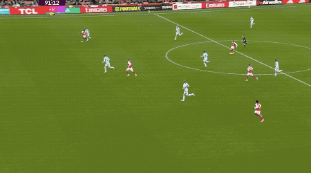 ในช่วงทดเวลาบาดเจ็บ เมรีโน่จ่ายบอลให้ซาก้าที่ลงสนามเป็นตัวสำรองยิงประตูชัย