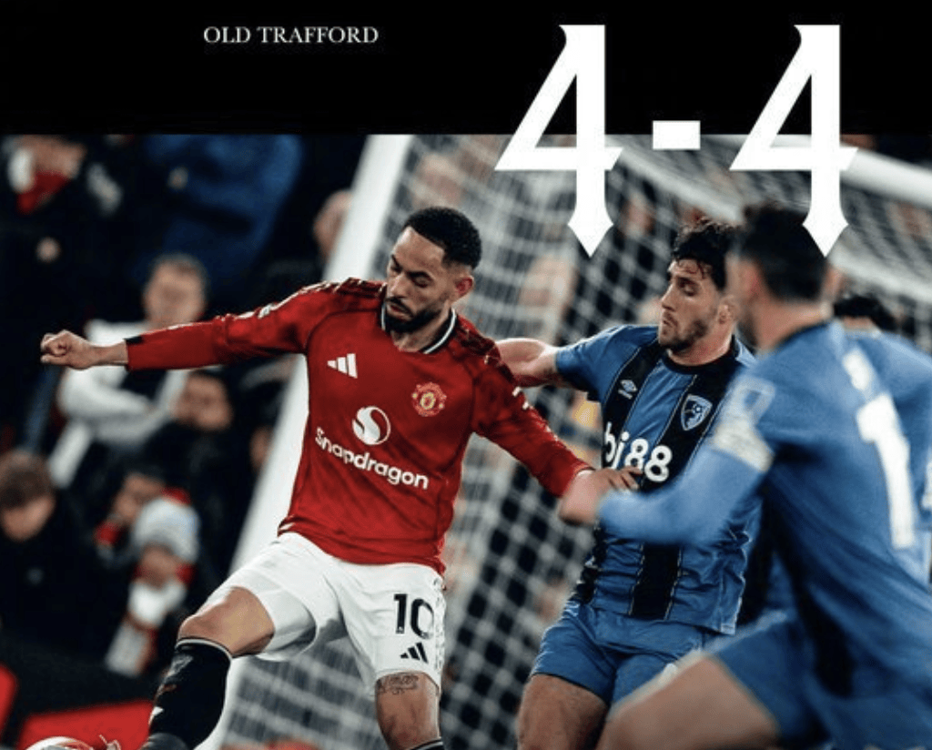 แมนเชสเตอร์ ยูไนเต็ด ถูกบอร์นมัธเสมอที่บ้าน โดยทั้งสองทีมทำประตูรวมกันถึง 8 ประตู ตลอดการแข่งขัน ยูไนเต็ดครองบอลได้ 56% ยิงประตู 25 ครั้ง และมี 9 ครั้งที่เข้ากรอบ ขณะที่คู่แข่งยิงประตู 14 ครั้ง และมี 9 ครั้งที่เข้ากรอบ ในตารางลีก ยูไนเต็ดอยู่อันดับที่ 6 มี 26 คะแนน จาก 16 นัด ตามหลังเชลซีที่อยู่อันดับ 4 อยู่ 2 คะแนน