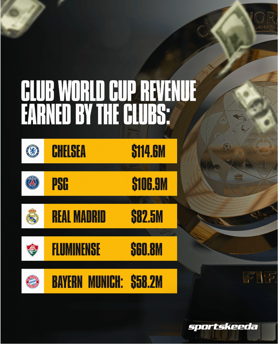 ในทางตรงกันข้าม ฉบับปี 2025 ของฟีฟ่า คลับ เวิลด์ คัพ แม้จะมีทีมเข้าร่วมเพียง 32 ทีม แต่ก็มีเงินรางวัลรวมที่น่าทึ่งถึง 1,000 ล้านดอลลาร์สหรัฐ แชมป์ของทัวร์นาเมนต์นี้อย่างเชลซี ได้รับเงินรางวัล 114 ล้านดอลลาร์สหรัฐ – มากกว่าสองเท่าของเงินรางวัลที่มอบให้กับแชมป์ฟีฟ่า เวิลด์ คัพ