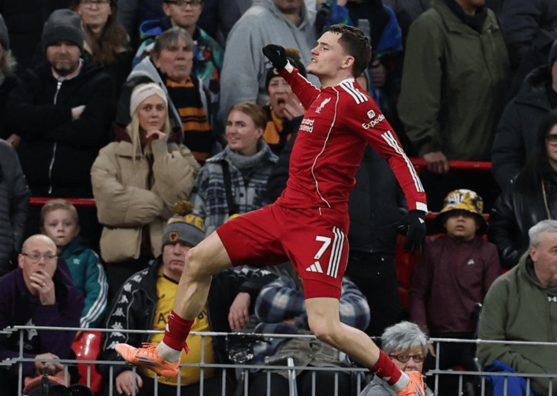 การแข่งขันพรีเมียร์ลีก รอบที่ 18 ลิเวอร์พูลเปิดบ้านต้อนรับการมาเยือนของวูล์ฟแฮมป์ตัน วันเดอเรอร์ส ที่สนามแอนฟิลด์ในครึ่งแรก การยิงอันทรงพลังของ Ekiti กระแทกเสา Mané ยิงไกลแต่บอลข้ามคาน Hrafnsson เปิดสกอร์แรก และ Wirtz ทำประตูที่สองให้ทีมนำ หลังจากพักครึ่ง Santiago Bueno ทำประตูให้ Wolves ไล่มาหนึ่งประตู Wirtz ยิงออกข้าง และ Arrokodare โหม่งข้ามคาน สุดท้าย Liverpool คว้าชัยชนะ 2-1 เหนือ Wolves ขยายสถิติชนะติดต่อกันเป็นสี่นัดในทุกรายการแข่งขัน