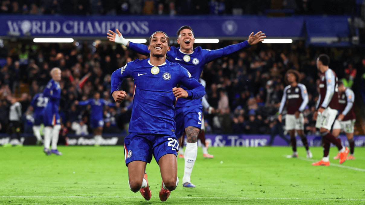 ในนาทีที่ 37 รีซ เจมส์ เปิดลูกเตะมุม ความวุ่นวายเกิดขึ้นหน้าประตูของวิลล่า เมื่อบอลกระทบหน้าแข้งของเปโดรและกระดอนเข้าประตูไป