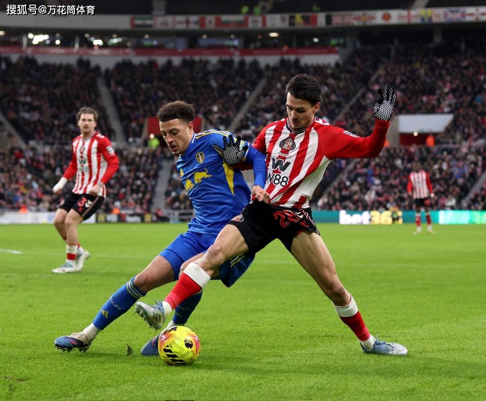 ในนาทีที่ 28 ซันเดอร์แลนด์ทำลายความตึงเครียดด้วยการทำประตูขึ้นนำ ซาก้าส่งบอลทะลุแนวรับจากกลางสนามอย่างแม่นยำ ทำให้อดิงกราสามารถควบคุมบอลทางฝั่งซ้ายของกรอบเขตโทษ ก่อนจะยิงโค้งเข้ามุมไกล ส่งซันเดอร์แลนด์ขึ้นนำ 1-0 ประตูนี้แสดงให้เห็นถึงแนวทางการโจมตีที่มีประสิทธิภาพสูงของทีมแมวดำในฤดูกาลนี้อีกครั้ง แม้จะขึ้นนำแล้ว ซันเดอร์แลนด์ก็ไม่ได้ครองเกมอย่างสมบูรณ์ลีดส์ ยูไนเต็ด ยังคงกดดันอย่างต่อเนื่อง สร้างโอกาสอันตรายหลายครั้ง ในช่วงทดเวลาบาดเจ็บของครึ่งแรก โหม่งของบร็อบเบย์ชนคานประตู ซันเดอร์แลนด์พลาดโอกาสที่จะนำห่างไปอย่างหวุดหวิด