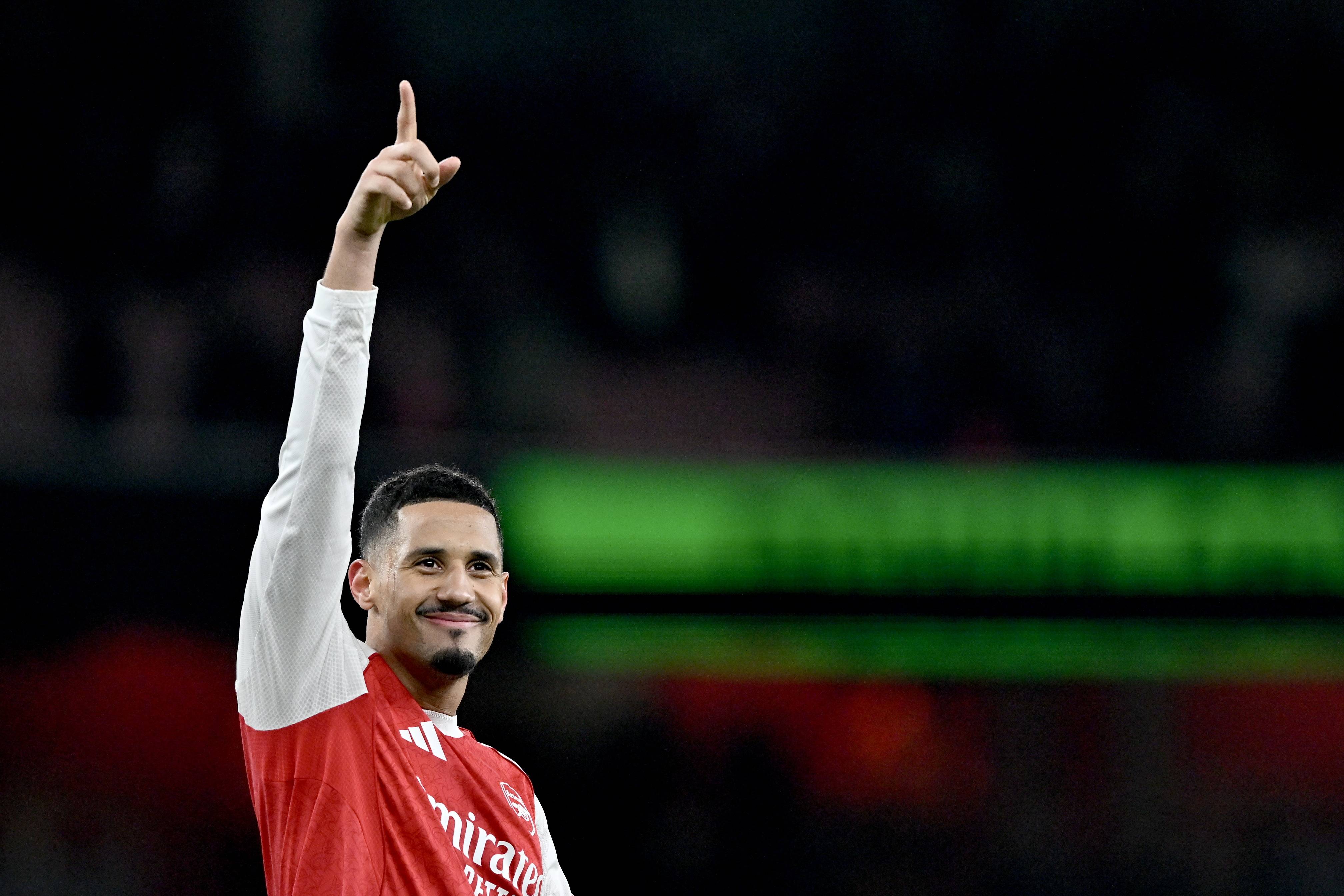 เมื่อวันที่ 30 ธันวาคม นักเตะอาร์เซนอล วิลเลียม ซาลิบา ฉลองชัยชนะ Xinhua/EPA
