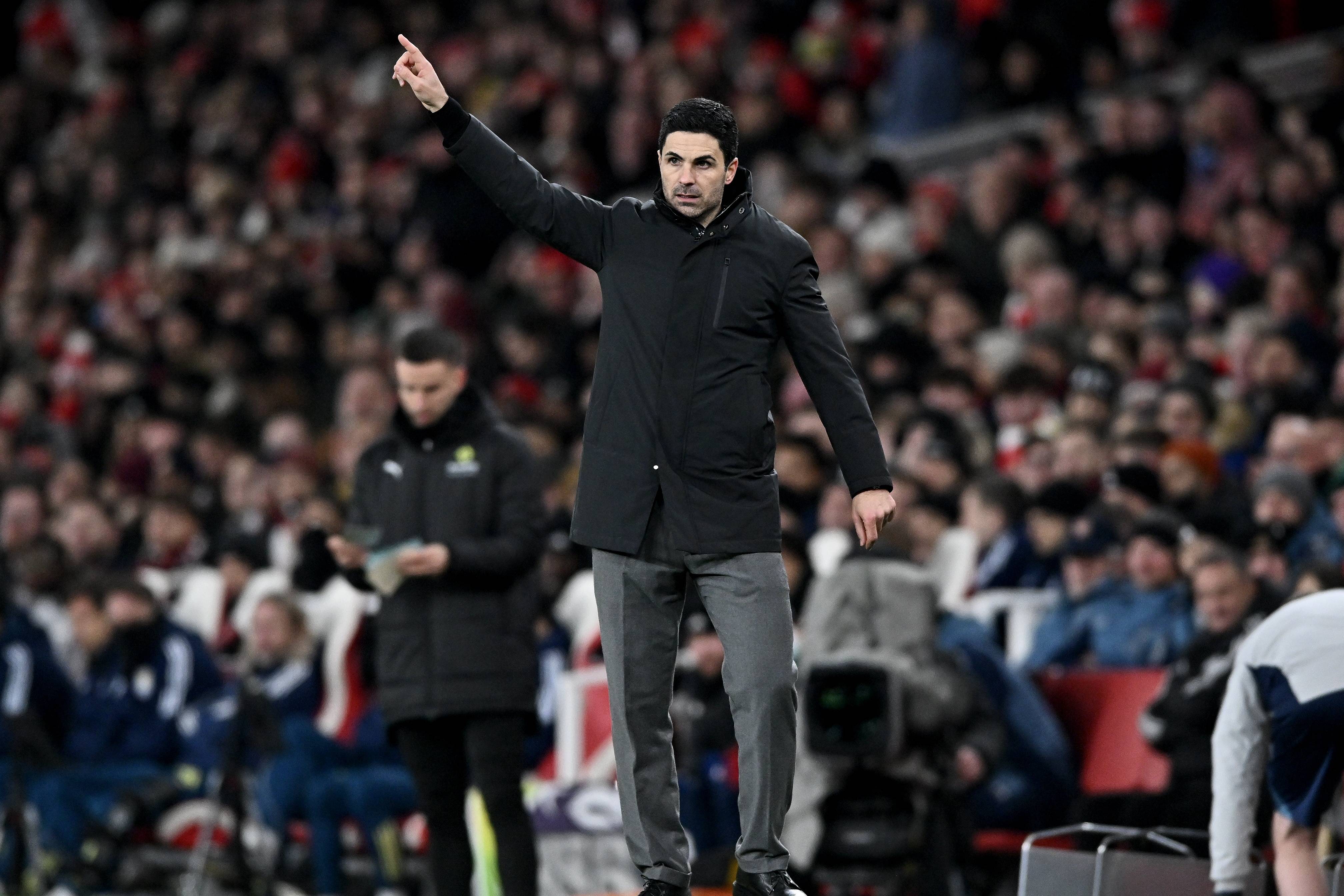 เมื่อวันที่ 30 ธันวาคม มิเกล อาร์เตต้า ผู้จัดการทีมอาร์เซนอล คุมทีมจากข้างสนาม ซินหัว/EPA