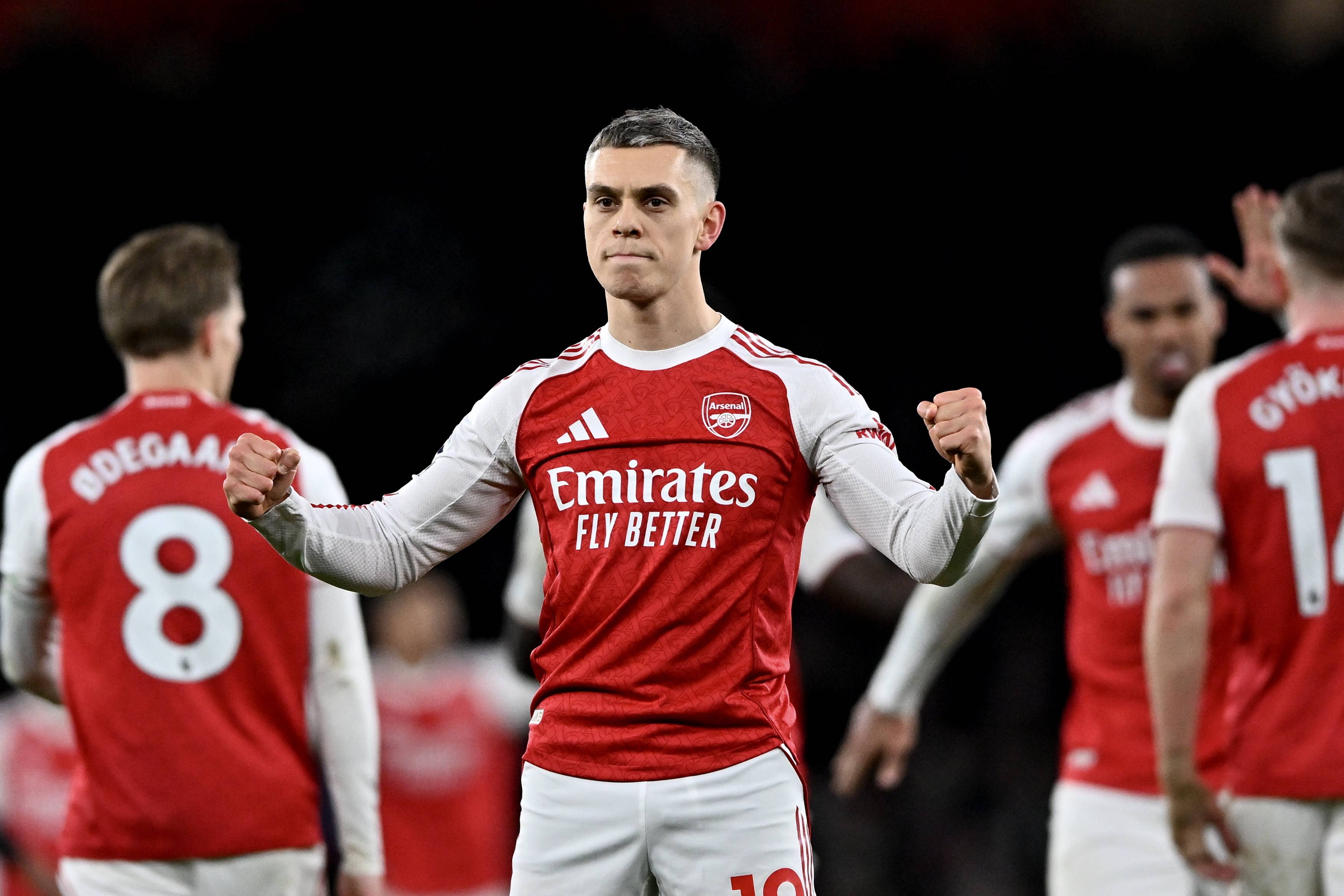 เมื่อวันที่ 30 ธันวาคม, นักเตะของอาร์เซนอล มิเกล อาร์เตตา ฉลองการทำประตูที่สองของทีม. ชินหัว/อีพีเอ
