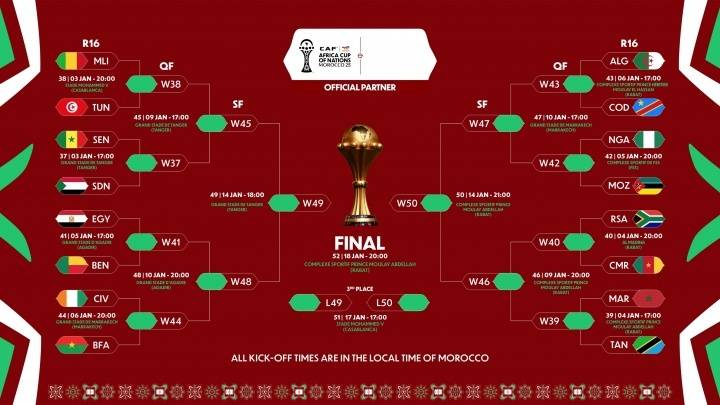 ตารางการแข่งขันรอบน็อคเอาท์ของแอฟริกาคัพออฟเนชันส์ได้ประกาศออกมาแล้ว