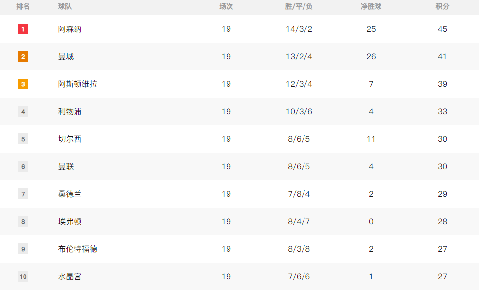 เวลาปักกิ่ง, 3 มกราคม –ในรอบที่ 19 ของฤดูกาลพรีเมียร์ลีก 2025-26 ทีมในอันดับท็อปหกมีเพียงอาร์เซนอลเท่านั้นที่คว้าชัยชนะได้ (อาร์เซนอล 4-1 แอสตัน วิลล่า, เชลซี 2-2 บอร์นมัธ, แมนเชสเตอร์ ยูไนเต็ด 1-1 วูล์ฟแฮมป์ตัน วันเดอเรอร์ส, ลิเวอร์พูล 0-0 ลีดส์ ยูไนเต็ด, ซันเดอร์แลนด์ 0-0 แมนเชสเตอร์ ซิตี้) ส่งผลให้ทีมปืนใหญ่ขยายช่องว่างเหนือแมนเชสเตอร์ ซิตี้ออกไปเป็นสี่แต้ม