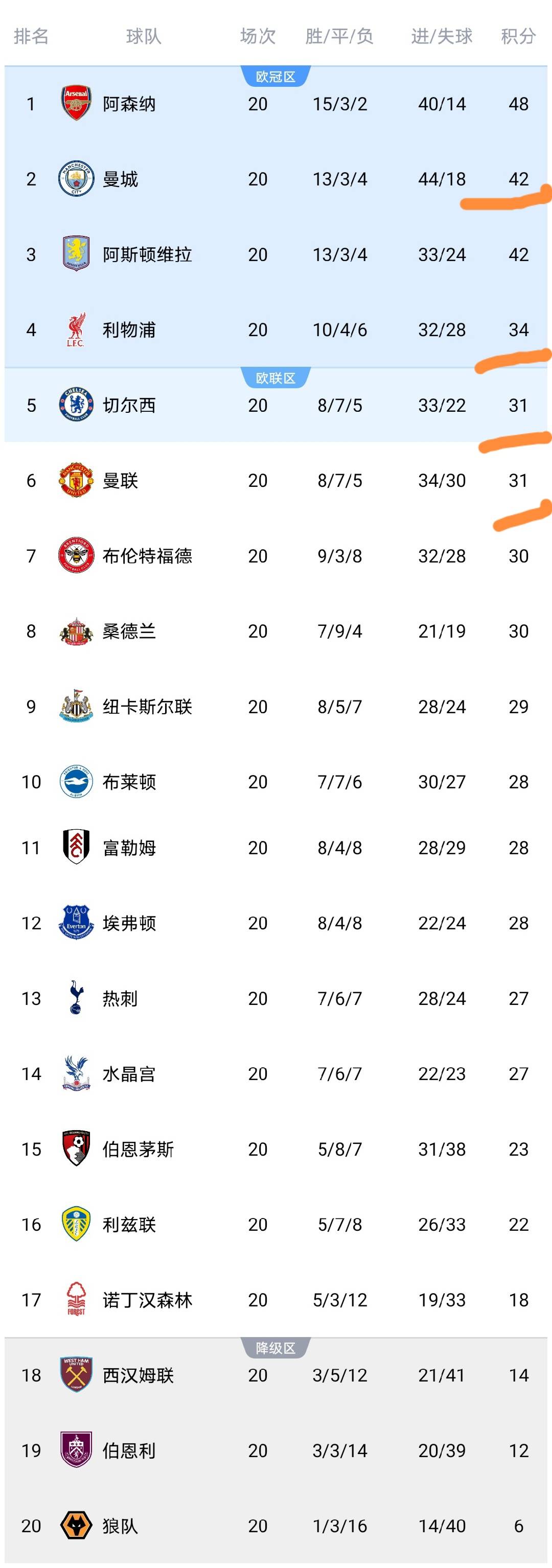 ตั้งแต่เมื่อคืนจนถึงช่วงเช้าตรู่ของวันนี้ มีการแข่งขันหลายคู่ในรอบที่ 20 ของพรีเมียร์ลีกที่จบลง โดยแมนเชสเตอร์ ซิตี้, แมนเชสเตอร์ ยูไนเต็ด และลิเวอร์พูล ต่างลงสนามแข่งขันกันทั้งสิ้น หลังจากการแข่งขันเหล่านี้สิ้นสุดลง ตารางคะแนนพรีเมียร์ลีกได้ถูกอัปเดตแล้ว