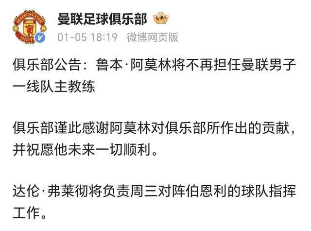 เมื่อวันที่ 5 มกราคม 2026 การประกาศอย่างเป็นทางการของแมนเชสเตอร์ยูไนเต็ดได้สร้างความฮือฮาไปทั่ววงการฟุตบอล: หัวหน้าผู้ฝึกสอน รูเบน อโมริม ถูกปลดออกจากตำแหน่งอย่างเป็นทางการ!