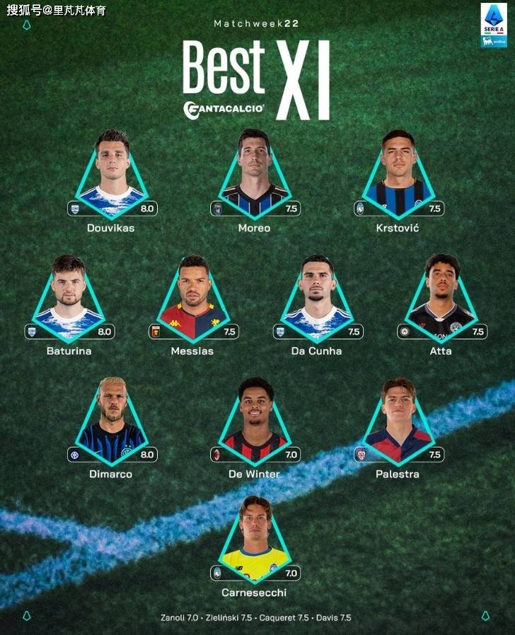 การคัดเลือกอย่างเป็นทางการของเซเรีย อา ได้ประกาศทีมยอดเยี่ยมประจำสัปดาห์สำหรับการแข่งขันนัดที่ 22 ผู้เล่นจากโคโม ซึ่งคว้าชัยชนะในรอบนี้ กลายเป็นผู้ชนะที่ยิ่งใหญ่ที่สุด โดยมีกองหน้า ดูวิคาส, กองกลาง บาตูร์นินา และ ดาคูเนีย ได้รับเลือกให้อยู่ในทีมทั้งหมดผู้ได้รับเกียรติอื่น ๆ ได้แก่ D'Entrèes ของเอซี มิลาน ซึ่งทำประตูแรกให้กับรอสโซเนรี; Dimarco ของอินเตอร์ มิลาน ที่ทำทั้งประตูและแอสซิสต์; และ Moreau ของปิซา ที่ทำสองประตูใส่เนรัซซูร์รี